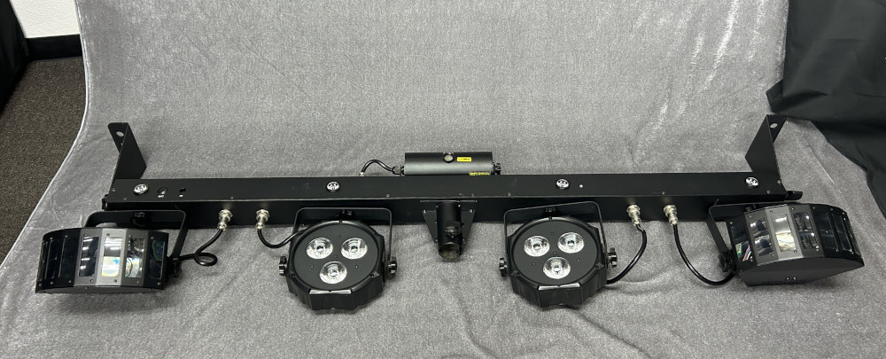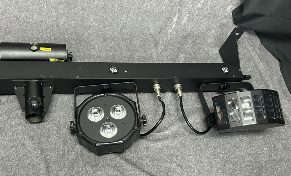 演出の中心となる素子は、TRIカラーのパーライトを2灯、ダービーLED を2灯、LEDストロボを4個、RGレーザーを搭載。付属のリモコンにより簡単にコントロールすることができます。