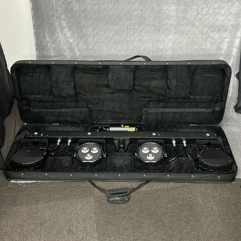 更に、複数台「LED Power Danceing Bar」をマスタースレーブ接続で同期させ、一斉に演出することができます。クラブ・パーティー・ライブ・ディナーショー・イベント・学園祭など、あらゆるシチュエーションにご使用頂けます。専用セミハードケースとスタンド用ソフトケースが付属しており、持ち運びも大変便利です。