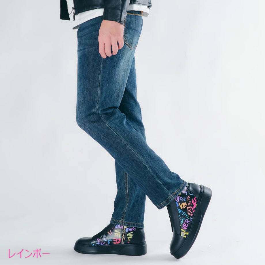 鮮やかなペイントレザーをワインポイントで採用し、足元をモダンに彩りました。