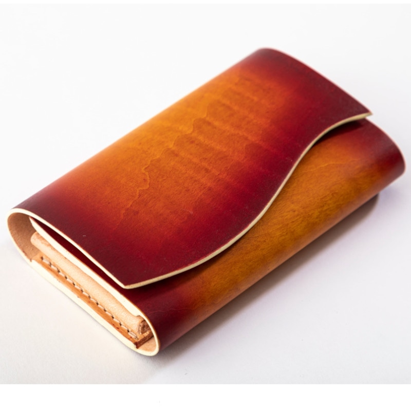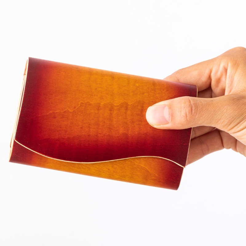 カーリーメイプルによる木材の質感、ヌメ革の革の質感、そのどちらもあなただけの色に染まっていく様子をお楽しみいただくとともに、