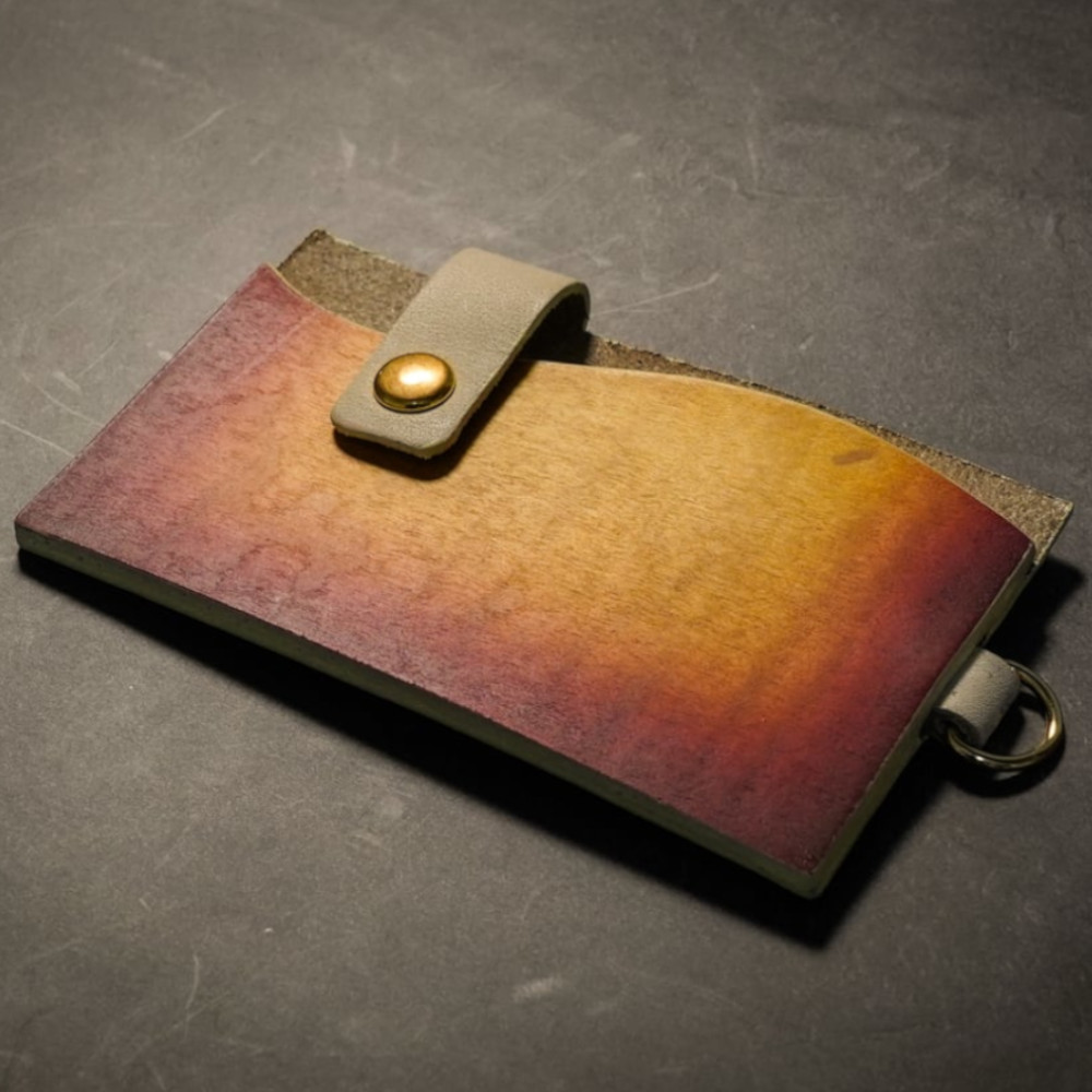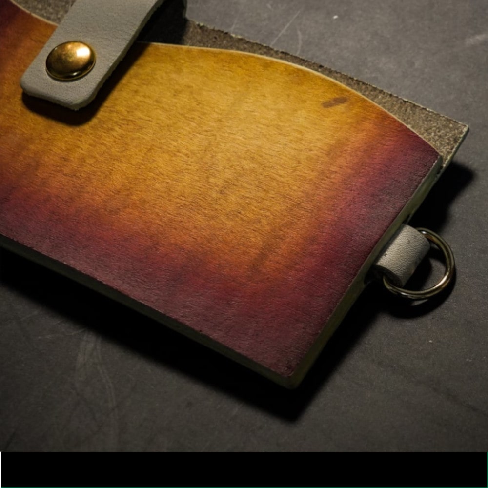 カーリーメイプルによる木材の質感、ヌメ革の革の質感、そのどちらもあなただけの色に染まっていく様子をお楽しみください。