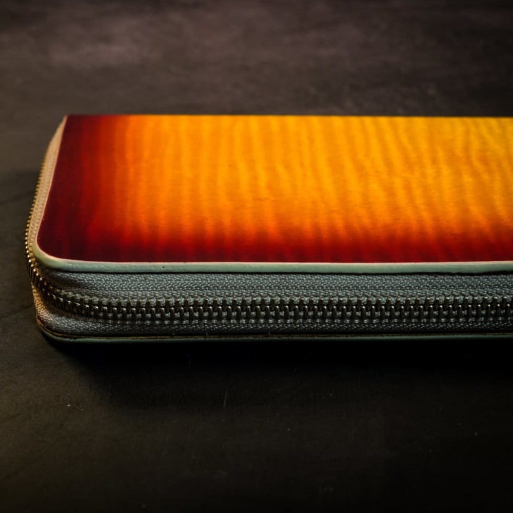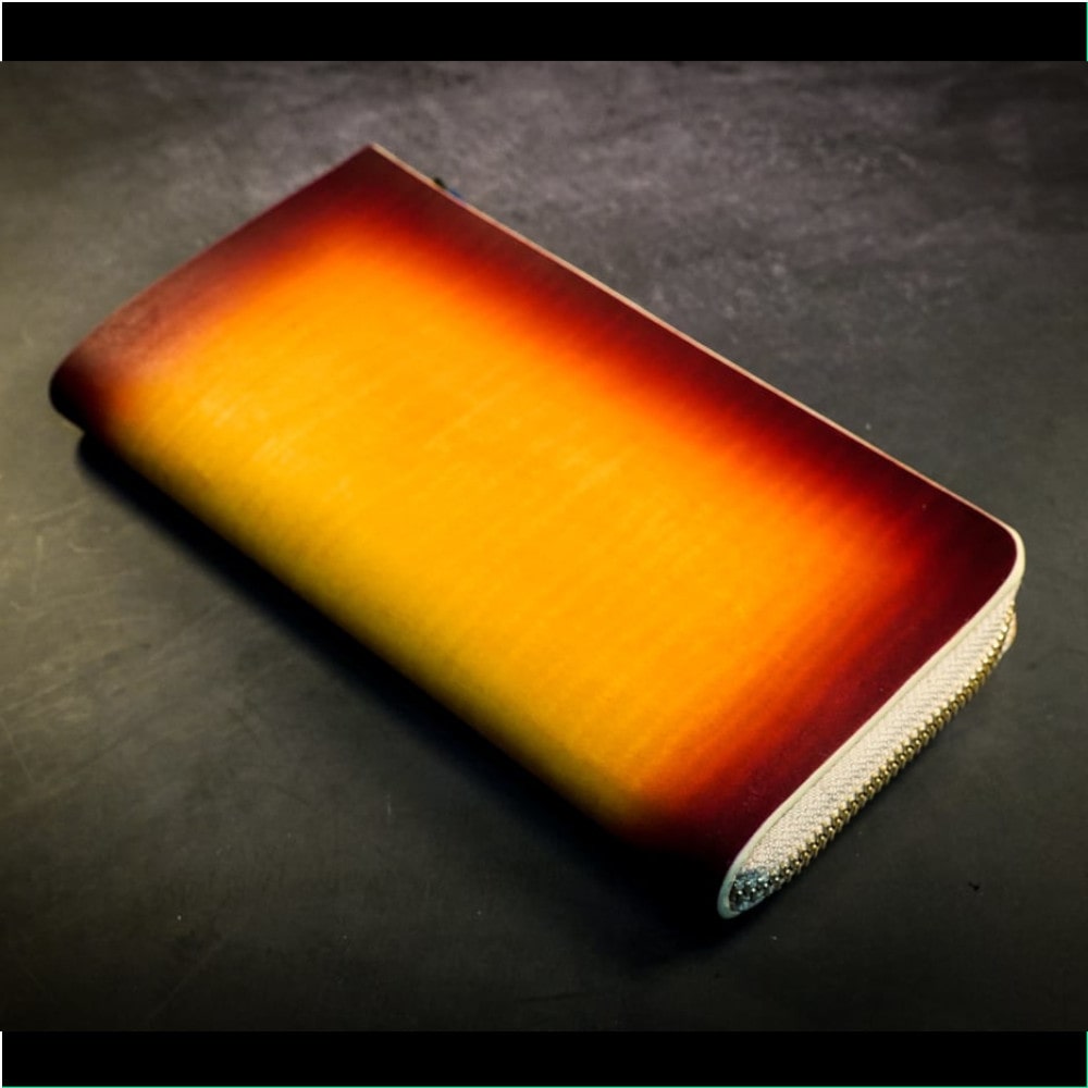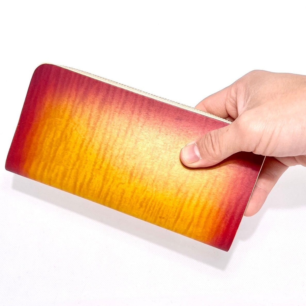 《HAND MADE Made in Japan》樹の肌触りと革の味わいを楽しめる sciva 長財布(L字ファスナー) wal-004-RSO sunRosso サンロッソ
