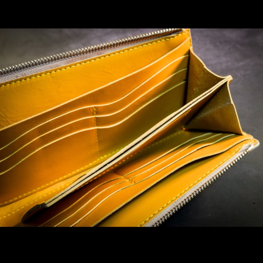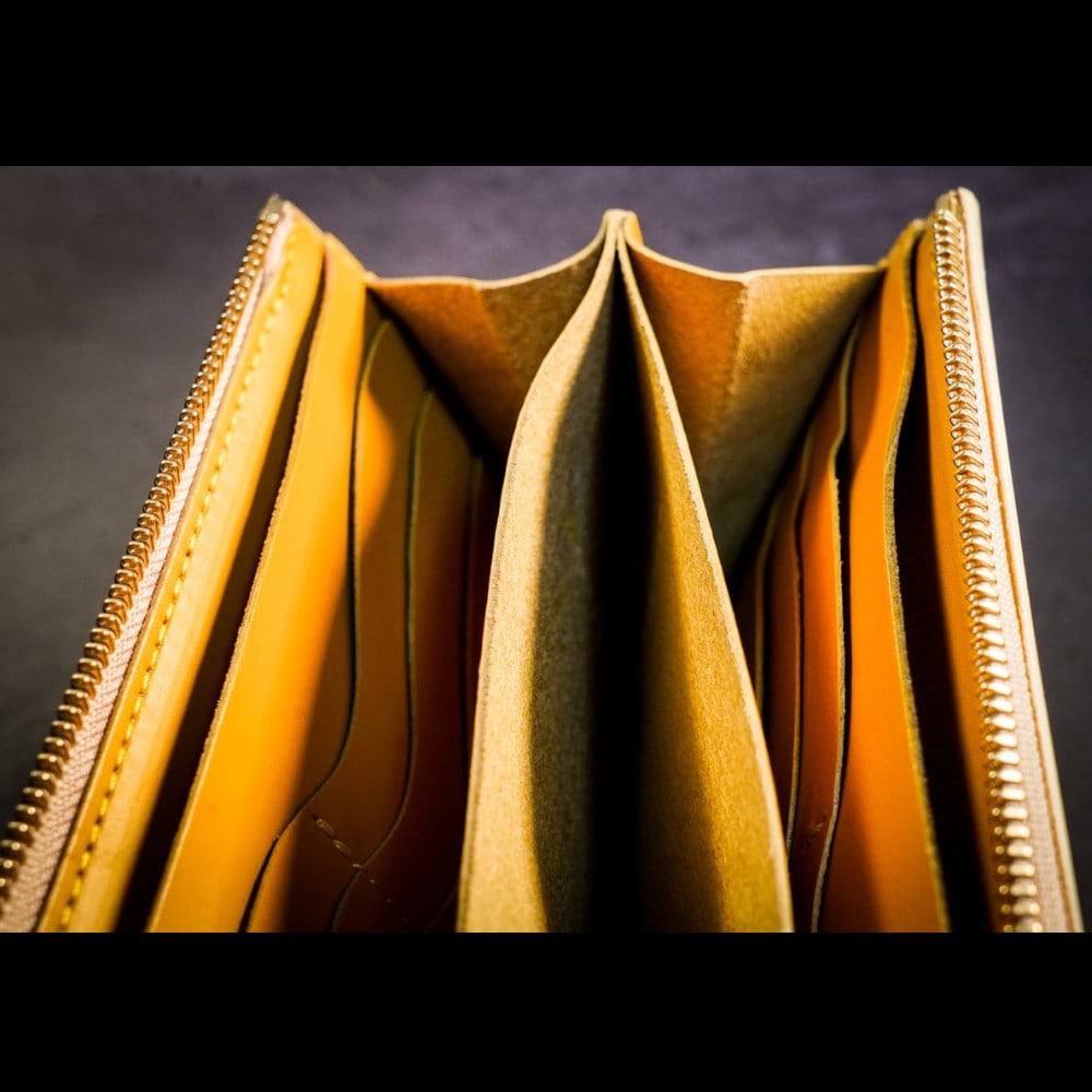 L字ファスナーでしっかりと開閉でき、中には14箇所のカード入れがありますので、使い勝手も抜群です。