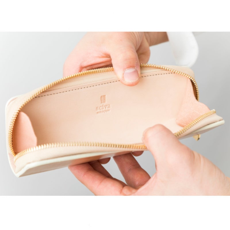 《HAND MADE Made in Japan》 sciva ペンケース Natural ナチュラル pen-001 NAT 樹の肌触りと革の味わい エイジングにより艶、触り心地の変化を楽しめる