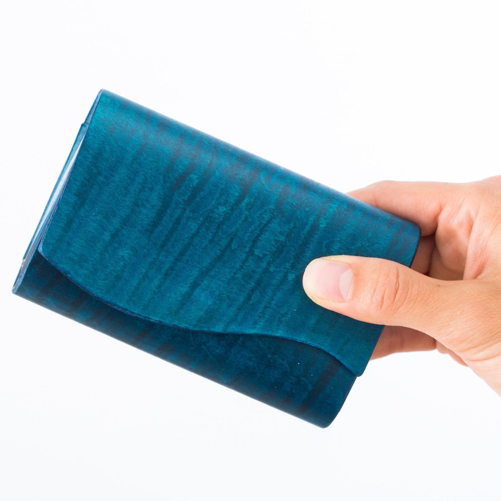 カーリーメイプルによる木材の質感、ヌメ革の革の質感、そのどちらもあなただけの色に染まっていく様子をお楽しみいただくとともに、