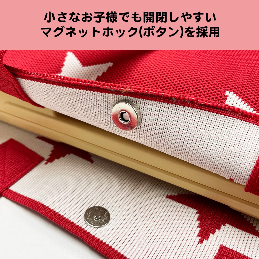 毎日の通園通学がもっと楽しくなるような、かわいいデザインで、柔らかいニット生地を採用した「鍵盤ハーモニカ」収納用のバッグです。 《特徴》 ●鍵盤ハーモニカをケース毎収納、一緒にA4サイズの楽譜も一緒に収納可能。 ●小さなお子様でも開閉がしやすいように、マグネットホック(ボタン)を採用。 ●伸縮する厚手のニット生地を採用し、優しい肌心地。 ●商品サイズ:約51×25cm(マチ無し)
