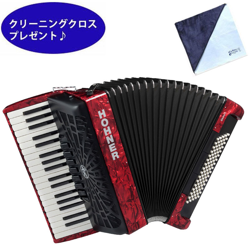 HOHNER Bravo III 80 RED ホーナー アコーディオン ピアノ式 37鍵盤 中型 レッド クリーニングクロスプレゼント 【取り寄せ商品】