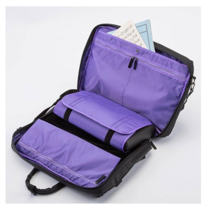 手提げ・バックパック・ショルダーの3通りで使用でき、内側のポケットにはB4サイズまでの楽譜を折らずにそのまま入れることができます。