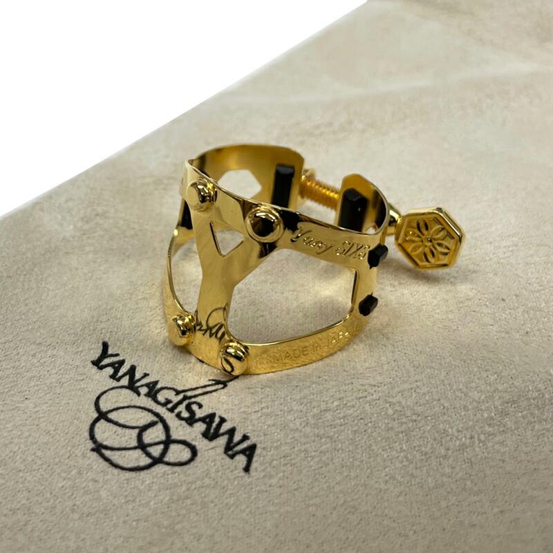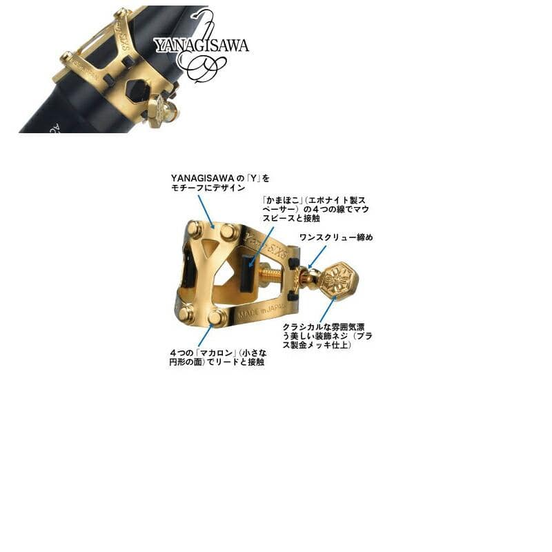 YANAGISAWAの「Y」をモチーフに、6つの空間を持たせたデザイン。リードにはブラス素材(金メッキ仕上)の4つの「マカロン」(小さな円形の面)で接触してしっかりとホールドし、リードの振動を最大限に引き出します。また、マウスピースには馴染みやすい同素材の4つの「かまぼこ」(エボナイト製スペーサー)で接触。均一に締めることができ、反応の良さが魅力のワンスクリュー逆締め構造。六角形の装飾ネジがクラシカルな雰囲気を漂わせます。