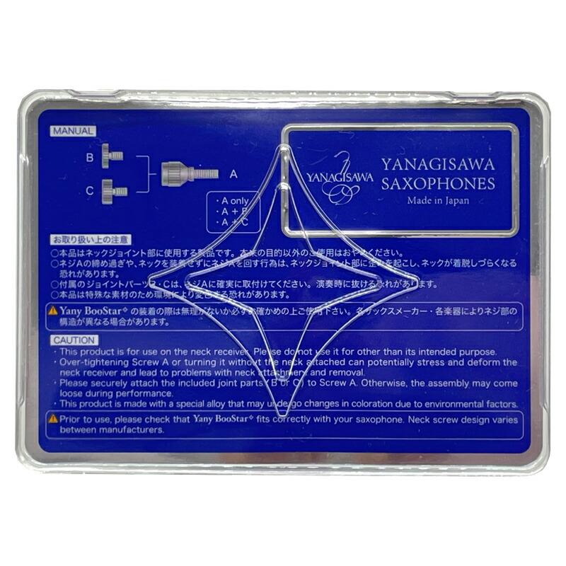 装着することで程よい抵抗感が生まれ、息の流れがスムーズに。全音域で音がまとまり、ボリュームのある濃厚な音質が得られます。 Yany BooStarの装着の際は無理がないか必ずお確かめの上ご使用ください。各サックスメーカー・各楽器によりネジ部の構造が異なる場合があります 特殊素材のネック止めネジ Yany BooStar〈ヤニー・ブースター〉 装着することで程よい抵抗感が生まれ、息の流れがスムーズに。全音域で音がまとまり、ボリュームのある濃厚な音質が得られます。 基本となるネジAには重さの異なるB、Cの2種類のパーツがジョイント可能。その組み合わせで、吹奏感や音質がさらに変化。楽曲や音楽シーンに応じた使い分けが可能です。(ソプラノ~バリトンまで兼用)