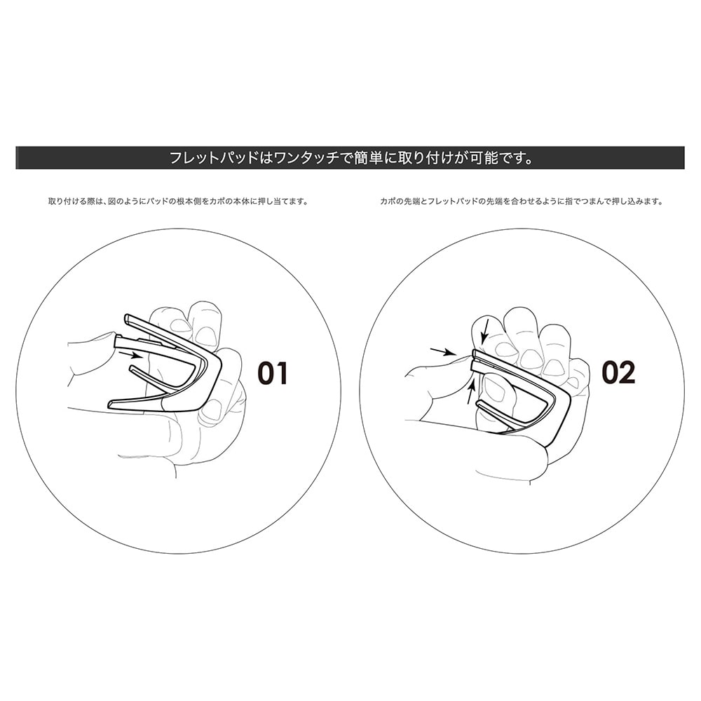 フレットパッドを組み合わせてご利用頂く事で、お持ちのギターや演奏により適したセッティングへカスタマイズする事が可能です。