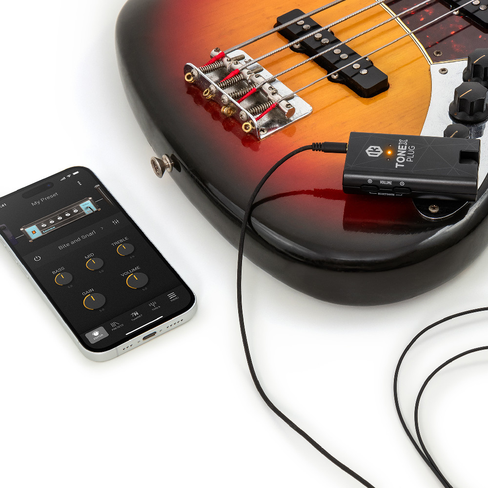TONEX Plug は、AI Machine ModelingによるTone Modelが使用できる、ギター/ベース用ポータブルヘッドホンアンプです。TONEX PedalやTONEX ONEと同等のスタジオクオリティのサウンドを、ポケットに入れて持ち運ぶことができます。