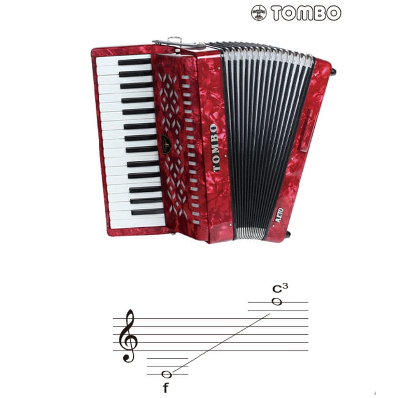 独奏用アコーディオンのような左手ベースボタンは無く、右手の鍵盤と蛇腹操作によって音を出します。