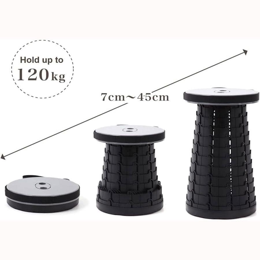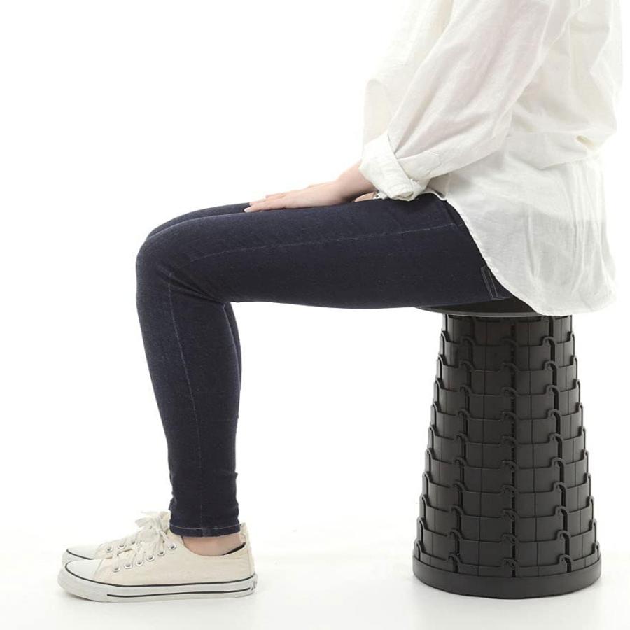 使い方は簡単。両サイドのくぼみをつまんで引っ張るだけ。どこで使うかはあなた次第。どこでもいつでも座れる伸縮式スツールのオリジナル。