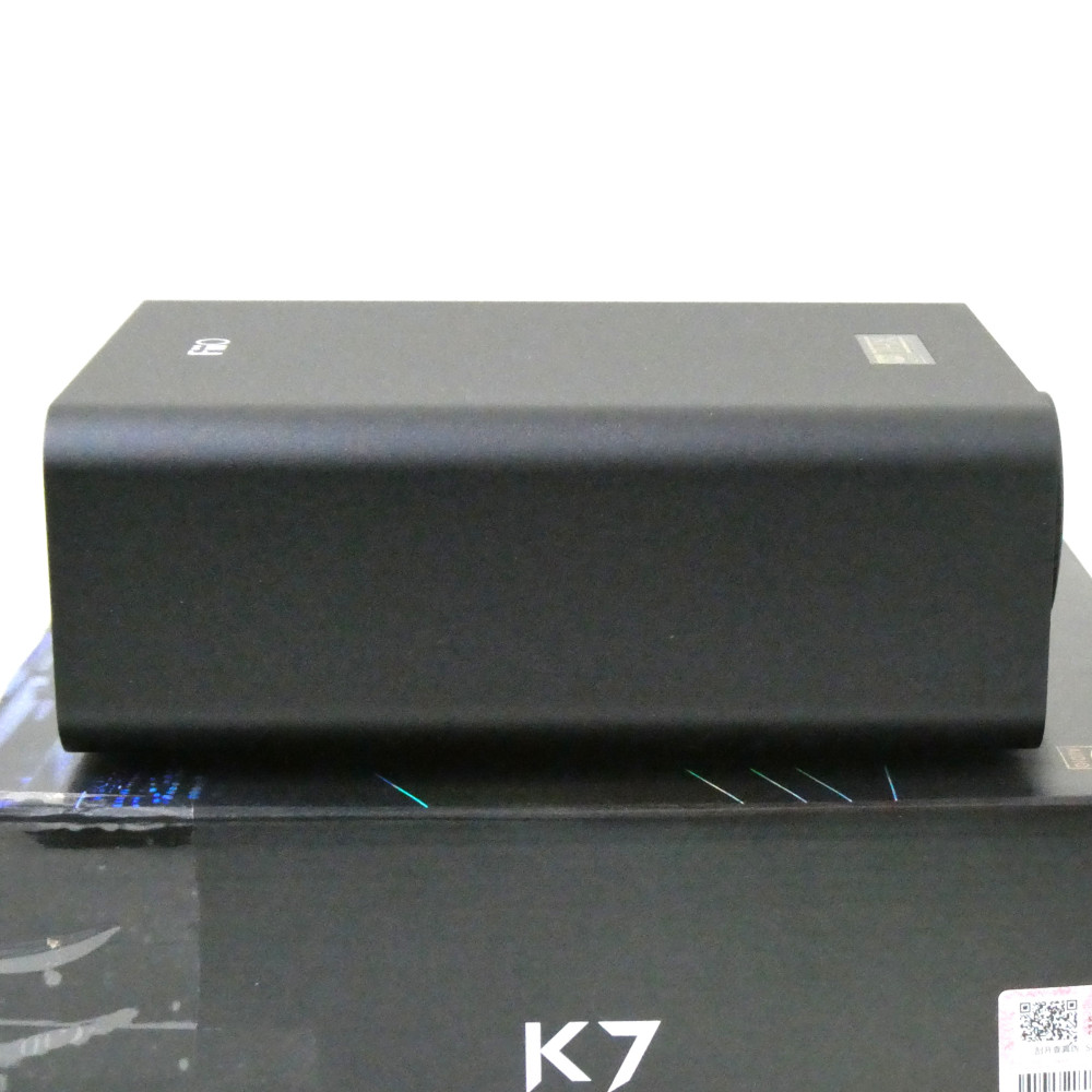 K7は、K5 Pro ESSと同サイズのコンパクトな据え置き型USB DAC/ヘッドホンアンプながら、AKMの最新DACチップ「AK4493SEQ」を左右のチャンネルで1基ずつ動作させるデュアル構成で搭載し、オーディオ回路は最上位モデルであるK9 Pro ESSと共通の完全バランス設計を採用。ユーザーから要望が多かったヘッドホンのバランス接続に対応する最新モデルです。