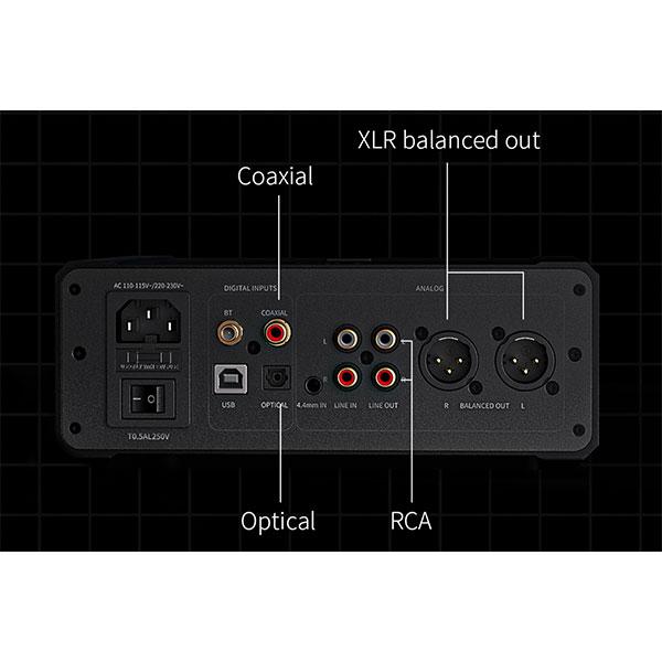 ●XLR 4ピン/4.4mm両対応のバランスヘッドホン出力のほか、高性能DAC/プリアンプとしても利用可能な豊富な入出力端子