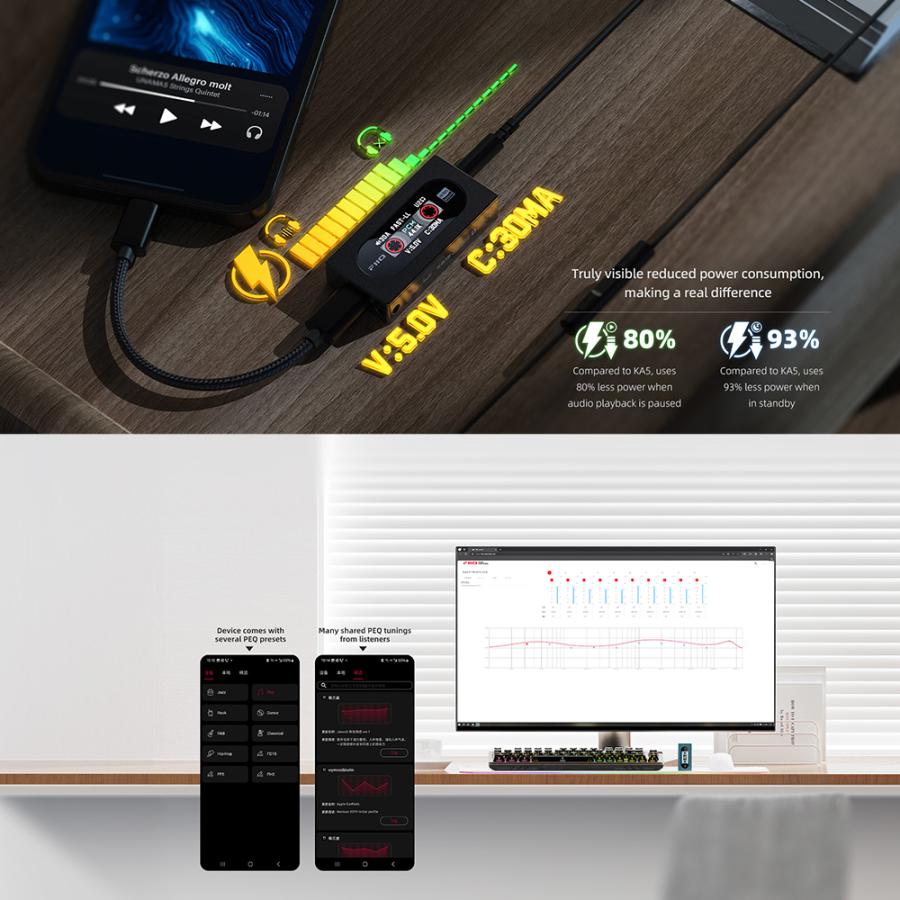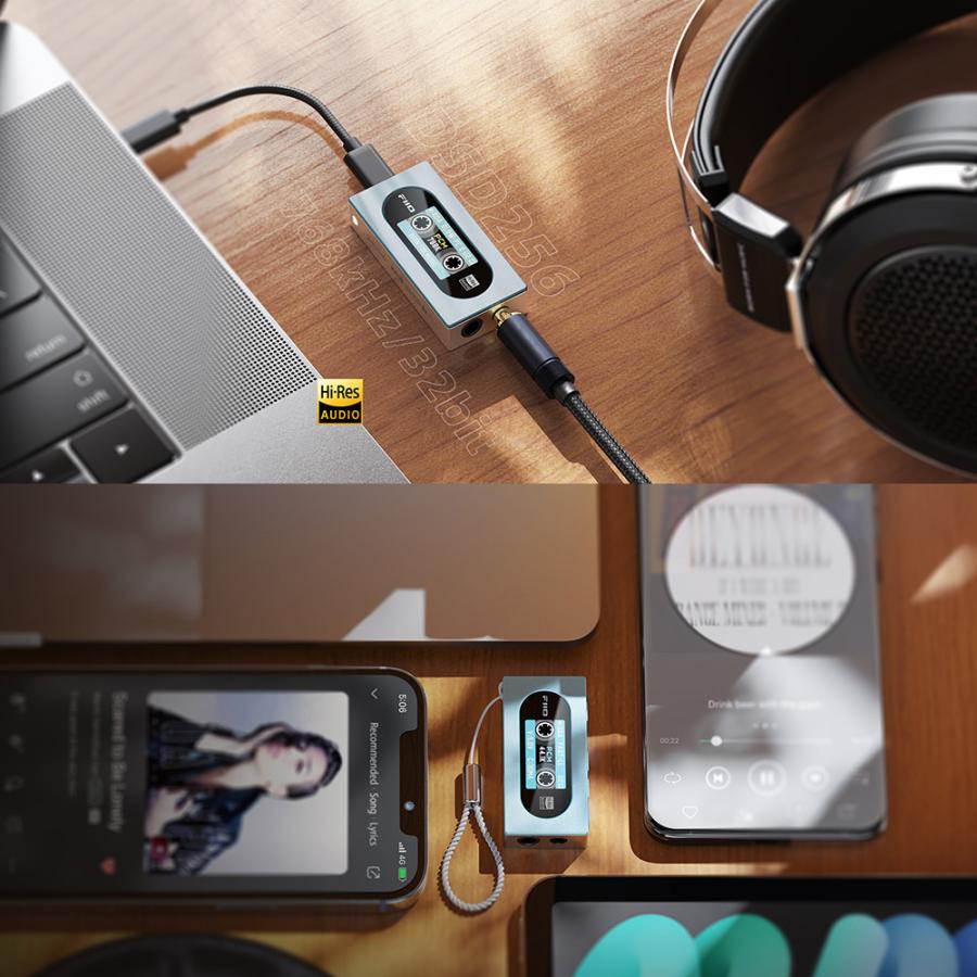 ※お手入れに便利な、FIIOロゴ入りマイクロファイバー・クリーニングクロスプレゼント! 外観にも遊び心を。 パワフルな出力と省電力を両立した多機能かつ超小型・軽量USB DAC内蔵ポータブルヘッドホンアンプ。 《主な特徴》 ●10バンドの高精度ロスレスPEQを搭載 ●リアルタイム電流・電圧モニタリングにより消費電力を管理 ●デスクトップモードでバランス出力による560mWの高出力を実現 ●それぞれデュアル構成のCirrus Logic製「CS43198」 DACとSGMICRO製「SGM8262」オペアンプを搭載 ●最大768kHz/32bitおよびDSD256のサンプリングレートに対応 ●専用アプリで様々な設定が可能(Androidのみ対応) ●2つの音量調整モードとカスタマイズ可能なボタン操作 ●オールアルミニウム合金の筐体による高品質な構造 ●各種OSとの幅広い互換性 ●視認性に優れた0.96インチIPSカラーLCD画面 《仕様》 電源:USBバスパワー駆動 DACチップ:CS43198 ×2 オペアンプ:SGM8262 ×2 USBチップ:SPV5048Pro 入力端子:USB Type-C (USB 2.0) 出力端子: ・3.5mm シングルエンドヘッドホン / 同軸デジタル出力端子(兼用) ・4.4mm バランスヘッドホン出力端子 推奨インピーダンス: ・16~150Ω (シングルエンド出力) ・16~300Ω (バランス出力) 最大出力: ・560mW(バランス出力、32Ω、THD+N<1%) ・290mW(アンバランス出力、16Ω、THD+N<1%) THD+N:<0.00045% (0dB、32Ω) 周波数特性:20Hz~50kHz S/N比: ・122dB (シングルエンド出力、32Ω、A-weighted) ・123dB (バランス出力、32Ω、 A-weighted) ノイズフロア: ・1.7uV (シングルエンド出力、A-weighted) ・3.2uV (バランス出力、A-weighted) 最大サンプリングレート: ・PCM 768kHz/32bit、DSD256(デジタル入力) ・PCM 384kHz/32bit(同軸デジタル出力) 寸法:約52×25×11mm 重量:約21g 付属品: ・USB Type-C to Cケーブル ・専用ケース ・クイックスタートガイド ※画像はイメージです。仕上げや製品仕様は予告なく変更することがございます