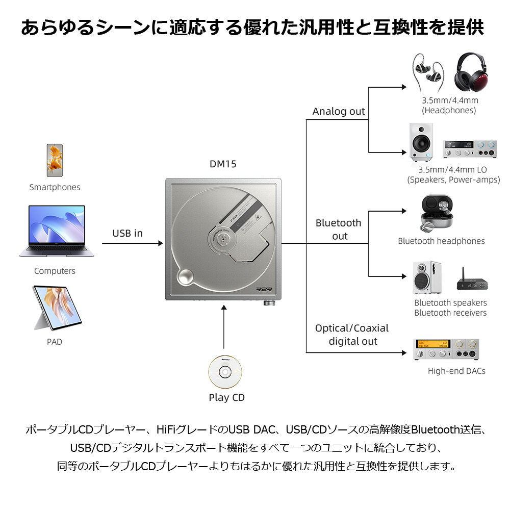 独自開発のR2R DACサウンドを。CD、USB DAC、Bluetooth送信を全部叶える多機能CDプレーヤー