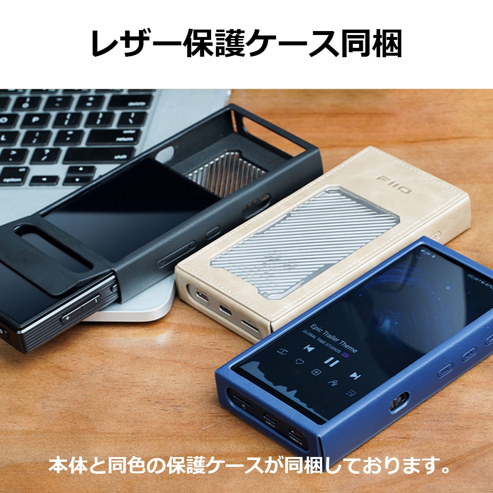 ※お手入れに便利な、FIIOロゴ入りマイクロファイバー・クリーニングクロスプレゼント! FIIOがポータブルDAPに初めて搭載した、自社開発フルバランス24bit R2R DAC回路。精密薄膜抵抗192個が生み出す、芯のしっかりしたサウンドが特長です。Snapdragon 680(8GB RAM + 128GB ROM)とAndroid 13による快適な操作性、TI製オペアンプによる最大1,100mWの高出力バランスアンプ、AUTO EQ対応10バンドPEQ、最大15.5時間の超長時間バッテリーを搭載。本格R2Rサウンドをポータブルで実現します。 《主な特徴》 ●フルバランスR2R DAC回路をポータブル製品に初搭載 ●大容量ストレージと高性能SoCで、快適な使用感と長期パフォーマンスを実現 ●超低遅延USB DAC専用チップ「XMOS XU316」を搭載 ●高精細、かつカスタマイズ可能な5.5インチ大型HDディスプレイ ●手にした瞬間に分かる、快適なグリップ感 ●フラッグシップ級の大容量FPGA+デュアルカスタムフェムト秒水晶発振器を搭載 ●理想のサウンドをワンタップで実現する、AUTO EQ対応 ●高性能なTI製オペアンプを搭載した、精巧なオーディオ回路 ●ハイエンドグレードのオーディオコンポーネントを多数搭載 ●各ステージ毎に独立電源回路を搭載し、電源供給を最適化 ●限りなく純粋なサウンドを追求する、多段分割シールド設計 ●安心の最大15.5時間、超長時間バッテリー ●幅広い使い方を支援する、デュアルUSB Type-Cポートを実装 ●多彩な出力と幅広い対応フォーマット ●高い汎用性、幅広い互換性、豊富な拡張性を実現する多彩なオプション 《R2R D/Aコンバーターとは?》 R2R D/Aコンバーターは、デジタル音声データであるPCM(Pulse Code Modulation)信号に最も忠実な変換形式です。音楽信号をサンプリング時間ごとに切り取りその大きさを記録したものがPCMですが、R-2Rラダー(はしご)と言う抵抗アレイの各段から電流を取り出すことにより、PCM信号の表す音の大きさを直接電流に変換し、アナログ音声を取り出すことが出来ます。 FIIOのR2R D/Aコンバーターは、24ビットのR2R D/A変換回路を高精度ディスクリート抵抗と高速スイッチングICの組み合わせで実現したものです。その音はPCMの各サンプリングデータを抵抗ラダー回路で変換することにより、芯のしっかりしたソリッドで力強いものとなります。 一方、現在主流のΔΣ型 D/AコンバーターはPCMデータの前後差分を取り出し次のデータに加える処理を繰り返す事により、PCMデータの大きさを複数のサンプリングに分散させトータルでD/A変換の精度を得る方式です。高速に処理させることにより分解能が向上する特徴が有りますが、反面PCM信号が各サンプリング時間から前後に滲む事になります。 その奏でる音にはD/AコンバーターIC各社の特徴が有りますが、D/A変換方式のベースは各社共通なため繊細で整っているといった共通項が存在します。 更にFIIO R2R D/Aコンバーターには別の特徴も有ります。もう一つの音楽信号フォーマットであるDSD(Direct Stream Digital)にも対応し、DSD信号の基本的なD/A変換方式となるFIR LPF処理をR2R回路によって実現します。そのためDSD信号もPCM変換といった信号処理を行わずダイレクトにアナログ音声へ変換することが可能で、DSD特有のナチュラルな雰囲気のまま再生することが可能です。 《仕様》 SoC:Qualcomm Snapdragon 680 ディスプレイ:5.5インチ 1080×2160 動作メモリ(RAM):8GB ストレージ(ROM):128GB ストレージ拡張:microSD(規格上限2TB) USB Type-C端子:USB3.0、電源入力 OS:Android 13 DAC:フルバランス24bit R2R DAC USBコントローラー:XMOS XU316 デコード仕様: ・ローカル再生:384kHz/32bit、DSD256(ネイティブ) ・USB DAC:768kHz/32bit、DSD512(ネイティブ) ・USB Audio出力:768kHz/32bit、DSD512(DoP / D2P / ネイティブ対応) ・同軸デジタル出力:384kHz/24bit、DSD128(DoP / D2P) Bluetoothバージョン:5.0 Bluetooth対応コーデック: ・受信:SBC/LDAC ・送信:SBC/aptX/aptX HD/LHDC/LDAC 最大ヘッドホン出力: ・32Ω:1100mW(THD+N<1%、バランス、Ultra Highゲイン) ・32Ω:470mW(THD+N<1%、シングル、Ultra Highゲイン) ・300Ω:240mW(THD+N<1%、バランス、Ultra Highゲイン) ・300Ω:60mW(THD+N<1%、シングル、Ultra Highゲイン) 音声出力端子 ・3.5mm(シングル/ライン/同軸デジタル) ・4.4mm(バランス/ライン) ・USB Type-C 音声入力端子 ・USB Type-C ・RCA同軸デジタル バッテリー容量:4400mAh バッテリー持続時間: ・シングル:約15.5時間 ・バランス:約13.5時間 寸法、重量:約138.2×71.5×17mm、約258g 付属品: ・液晶保護フィルム(本体装着済み) ・レザーケース(本体装着済み) ・USBデータケーブル