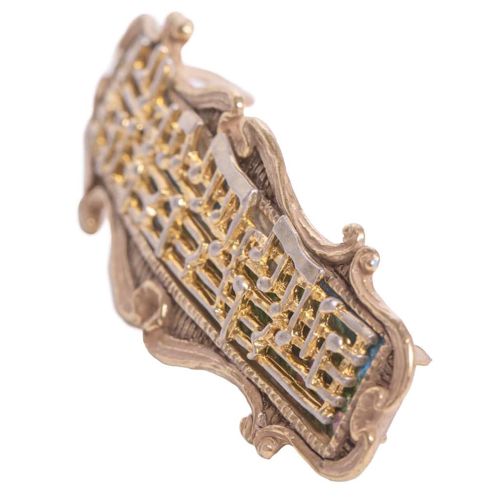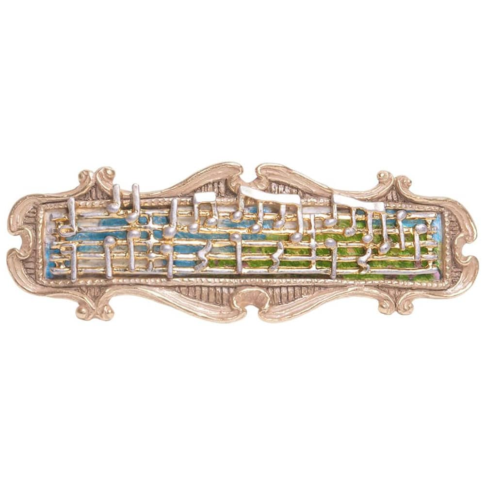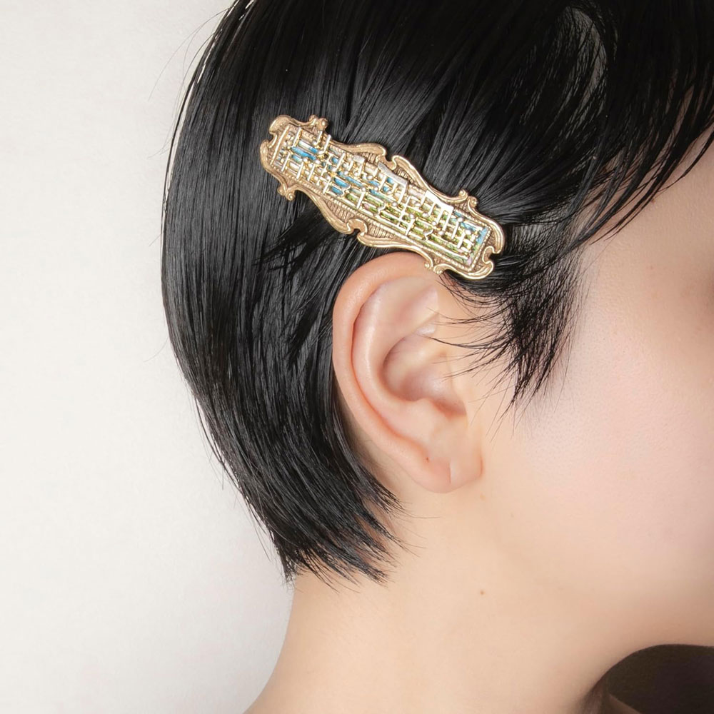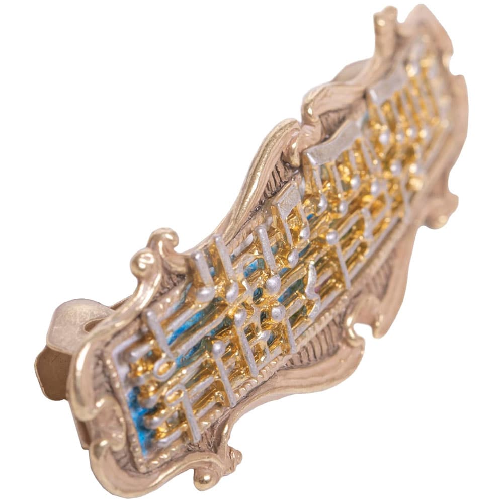 バッハの「フランス組曲 第5番 ト長調 BWV 816 ガヴォット」の楽譜をモチーフにしたバレッタ。