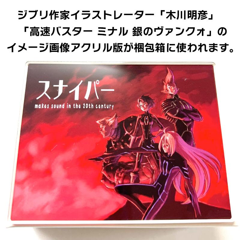 ●「スナイパー」のイメージに合わせ、パッケージを SF作家の木川明彦著 スタジオジブリ作品の作画監督等でも知られる山下明彦がキャラクターデザインとイラストレーションを務めたSFノベル「高速バスター ミナル 銀のヴァンクォ」とコラボ。梱包材に山下さん作画イラストの描かれたアクリル板を使いました。同梱のイヤホンケースと一緒にお部屋に飾れます。