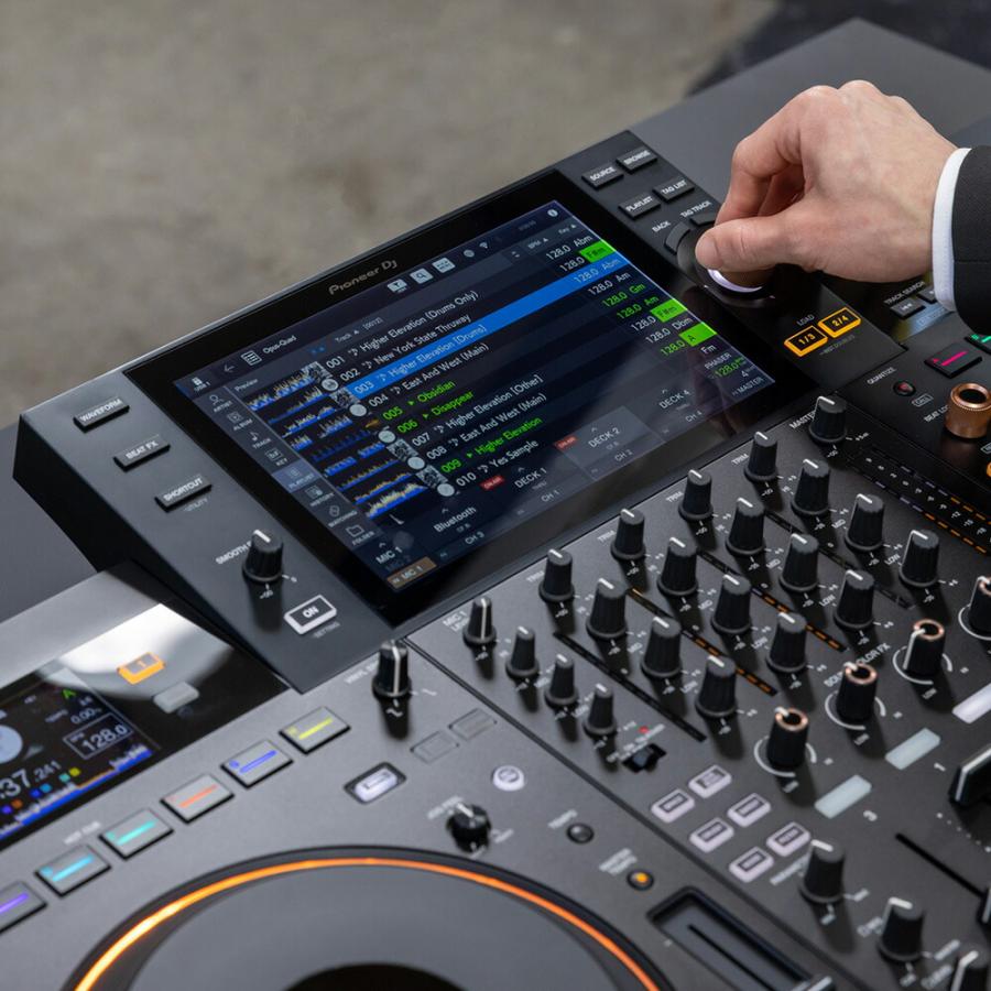 静電タッチモジュール搭載の 10.1 インチタッチディスプレイを採用しました。これにより、プレイリスト間の素早い移動が可能なPLALYLIST BANK や、ブラウズ中に楽曲のプレビュー再生が可能なTOUCH PREVIEW、キーボードサーチなど選曲の質を高める充実した機能のなめらかな操作感と、閲覧性の向上を実現します。左右上下へのプッシュ操作が加わったジョイスティック型 の 新規開発SMART ROTARY SELECTOR とその周辺に集約されたブラウズ関連操作子により、手の位置を動かすことなく直感的な選曲を可能にし、膨大なライブラリであっても今まで以上に素早く確実に選曲を行うことができます。