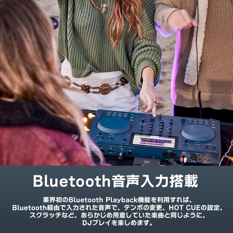 OMNIS-DUOは、Bluetooth音声入力に対応しているので、パーティーに参加するすべての人が選曲でき、より一体となって盛り上がることができます。スマートフォンなどのBluetooth対応デバイスで楽曲を再生すれば、その音声をOMNIS-DUOのミキサー部に入力することができます。ボリュームやEQの調整、エフェクトの追加など、手軽に音楽をアレンジし、仲間と盛り上がることができます。さらに、業界初のBluetooth Playback機能を利用すれば、Bluetooth経由で入力された音声をデッキでコントロールできます。テンポの変更、HOT CUEの設定、スクラッチなど、あらかじめ用意していた楽曲と同じように、DJプレイを楽しめます。OMNIS-DUOとBluetooth音声入力機能で、友人や家族との集まりが一層楽しく、音楽の新しい体験が広がります。