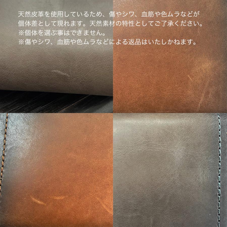 ※天然皮革を使用しているため、傷やシワ、血筋や色ムラなどが「個体差」として現れます。天然素材の特性としてご了承ください。