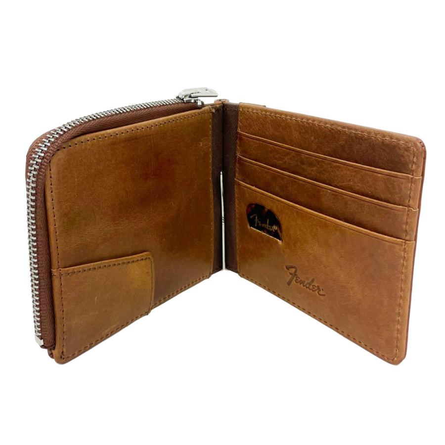 エレキギター界のトップブランドである「Fender」からライフスタイルに溶け込むアイテムが展開。国産のヌメ革を使用したマネークリップ。FenderのストラップをイメージしたウォレットコードとFenderのギターピックが付属し、ギターピックは収納可能。Fenderを愛する人々に贈る、遊び心とこだわりを詰め込んだアイテム。