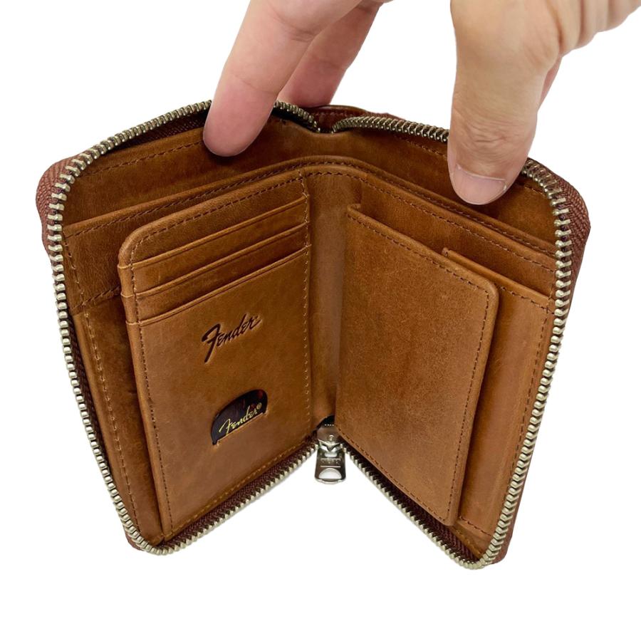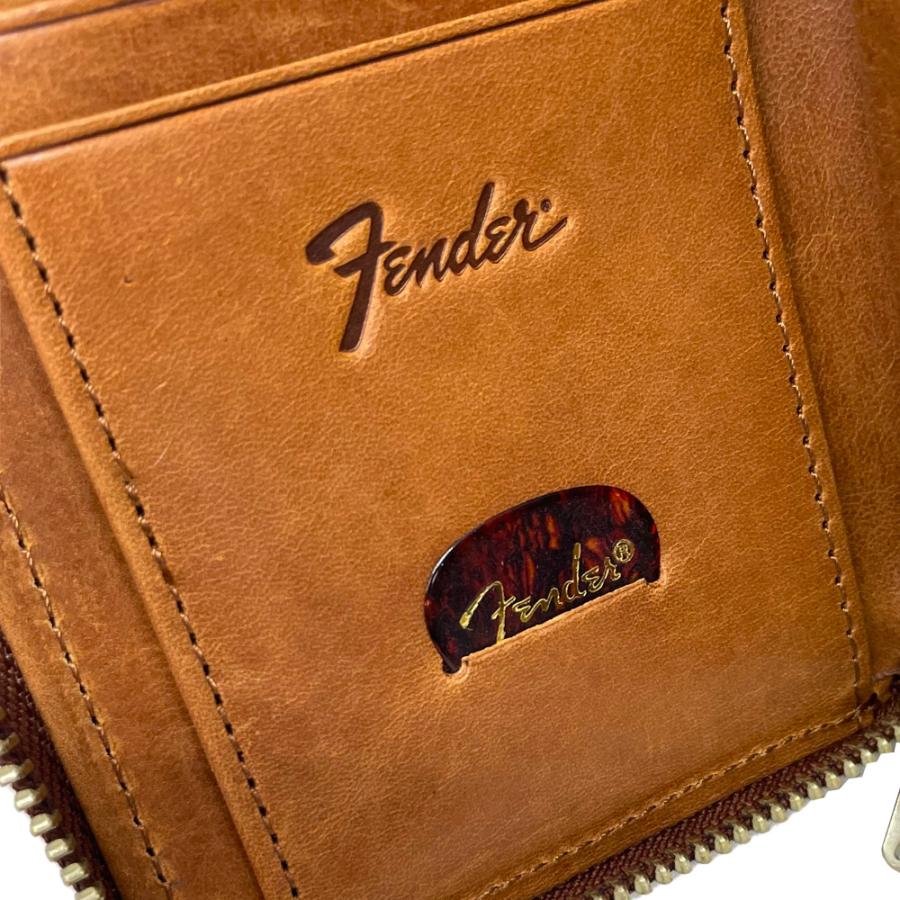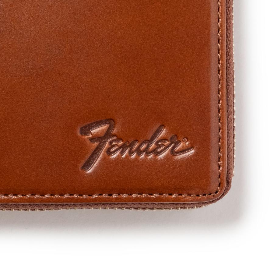 《購入前のご注意》 ※天然皮革を使用しているため、傷やシワ、血筋や色ムラなどが「個体差」として現れます。天然素材の特性としてご了承ください。 ※個体を選ぶ事はできません。 ※傷やシワ、血筋や色ムラなどによる返品はいたしかねます。 ※この製品は、素材本来の風合いを活かす加工をしております。摩擦や水濡れ、長時間の接触などによって製品にシミがついたり色落ち・色移りする場合があります。雨天時のご使用や淡色の衣服と組み合わせる際には特にご注意ください。 以上ご理解上お買い求めください。 エレキギター界のトップブランドである「Fender」からライフスタイルに溶け込むアイテムが展開。国産のヌメ革を使用した財布。FenderのストラップをイメージしたウォレットコードとFenderのギターピックが付属し、ギターピックは収納可能。Fenderを愛する人々に贈る、遊び心とこだわりを詰め込んだアイテム。 国産のヌメ革を使用しており使えは使うほど柔らかくなり味が出てきます。 ギフトにもおすすめです。 《仕様》 材質:牛革 仕様:ラウンドファスナー 収納ポケット: ・内側:スナップボタン式小銭入れx1 札入れx2 カードスロットx7 ・背面:Dカンx1 付属:ギターピック/ウォレットコード ウォレットコード最長:約 73cm ※ギターピックはロットによってデザインが変更になりますのでご了承ください。 【Fenderとは】 Fenderは1946年、レオ・フェンダーによって南カリフォルニアで創設された世界的楽器製造メーカー。 テレキャスター、ストラトキャスター、プレシジョンベース、ジャズベースなどの多くの傑作機を生み出し、その誕生以来、エレキギター界のトップブランドとして君臨し続けている。 ビギナーな愛好家、世界的アーティストやパフォーマーまで、多くの人がフェンダーの楽器とアンプを使用しており、それは敬意を表される楽器業界の代名詞となるのみではなく、文化の象徴にもなっている。 THE SPIRIT OF ROCK-N-ROLL(ロックンロール魂)をビジョンに、全世界の音楽ファンの期待を上回るべく、Fenderの伝統的デザインとトレンドを両立させ、ライフスタイルに溶け込むアイテムを展開する。