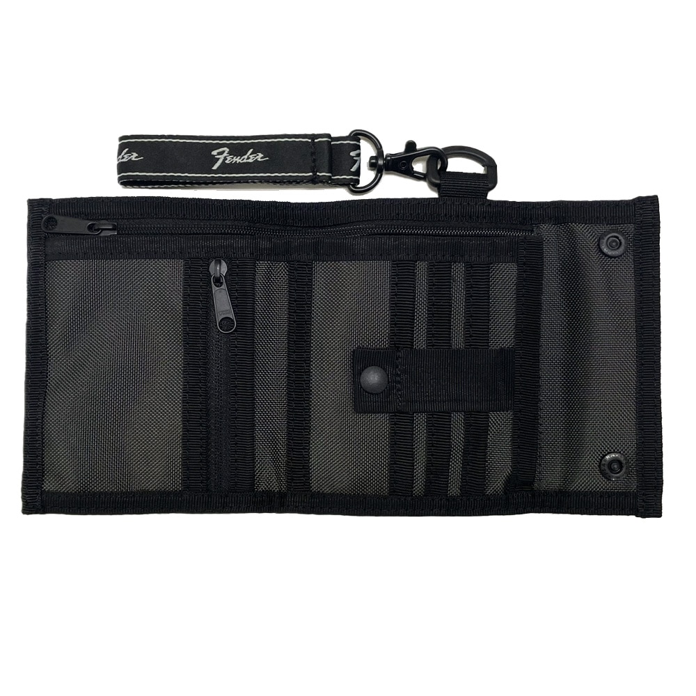 日常からフェスまで、身軽に使えるシンプルな三つ折り財布 わずか80gと超軽量ながら、日常の必需品をコンパクトに持ち運べる三つ折り財布。 耐久性に優れたナイロン素材に、Fenderのアイコニックな刺繍ロゴをあしらったシンプルなデザインです。 デザインのアクセントになる、脱着可能なロゴ入りストラップが付属します。 普段使いはもちろん、荷物を最小限に抑えたいフェスやキャンプ、旅行先でのサブ財布としても最適です。 ●ポケットに入り、コンパクトに持ち運べる三つ折りタイプ ●軽量で耐久性に優れたナイロン素材を使用 ●フロントにFender刺繍ロゴ ●デザインのアクセントになる、脱着可能なロゴ入りストラップ ●札入れx2、小銭入れx1、カードスロットx3を装備し、必要最小限のものをスマートに整理 ●ファスナー付き札入れは、紙幣だけでなくレシートや領収書の収納にも便利 ●カードスロットx3には、脱落を防ぐスナップボタンバンドを搭載 ●小銭入れはファスナー式で、中身がこぼれず安心 《仕様》 ・メイン素材:ナイロン ・サイズ:W12×H10×D1 cm ・重量:約 80 g ・生産国:MADE IN VIETNAM ・開閉:スナップボタン + 三つ折り ・内装:ファスナー式小銭入れx1 札入れx1 カードスロットx3 ポケットx1 ファスナー式ポケットx1 ・外装:ポケットx1 Dカンx1 ・付属:ストラップx1 【Fenderとは】 Fenderは1946年、レオ・フェンダーによって南カリフォルニアで創設された世界的楽器製造メーカー。 テレキャスター、ストラトキャスター、プレシジョンベース、ジャズベースなどの多くの傑作機を生み出し、その誕生以来、エレキギター界のトップブランドとして君臨し続けている。 ビギナーな愛好家、世界的アーティストやパフォーマーまで、多くの人がフェンダーの楽器とアンプを使用しており、それは敬意を表される楽器業界の代名詞となるのみではなく、文化の象徴にもなっている。 THE SPIRIT OF ROCK-N-ROLL(ロックンロール魂)をビジョンに、全世界の音楽ファンの期待を上回るべく、Fenderの伝統的デザインとトレンドを両立させ、ライフスタイルに溶け込むアイテムを展開する。