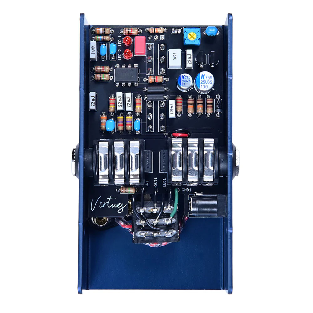 monicaでも使用した、オリジナリティであるバイポーラトランジスタクリッピング、吟味したLEDのコンビネーションクリッピングにより、コンプレッション、サスティーン共に良好で、ローゲインからハイゲインまで全てのポジションで素晴らしいドライブサウンドが得られる汎用性に優れたディストーション ペダルです。