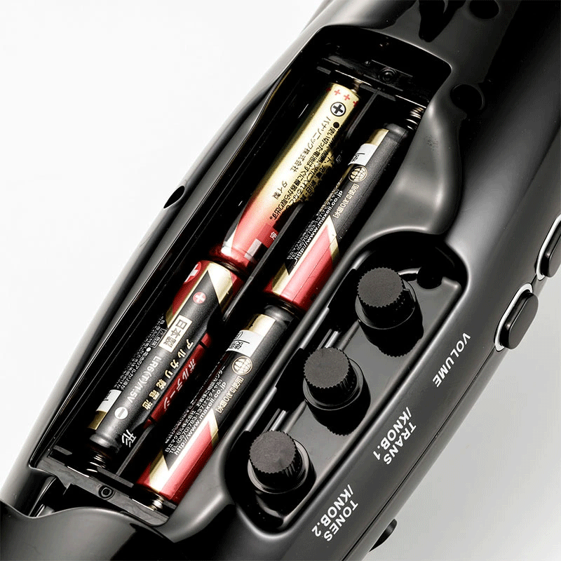 本体にスピーカーを内蔵し、単3電池による使用が可能なため、ケーブルレスでお使いいただける他、ヘッドフォン端子も装備しているため夜間の練習にも最適です。