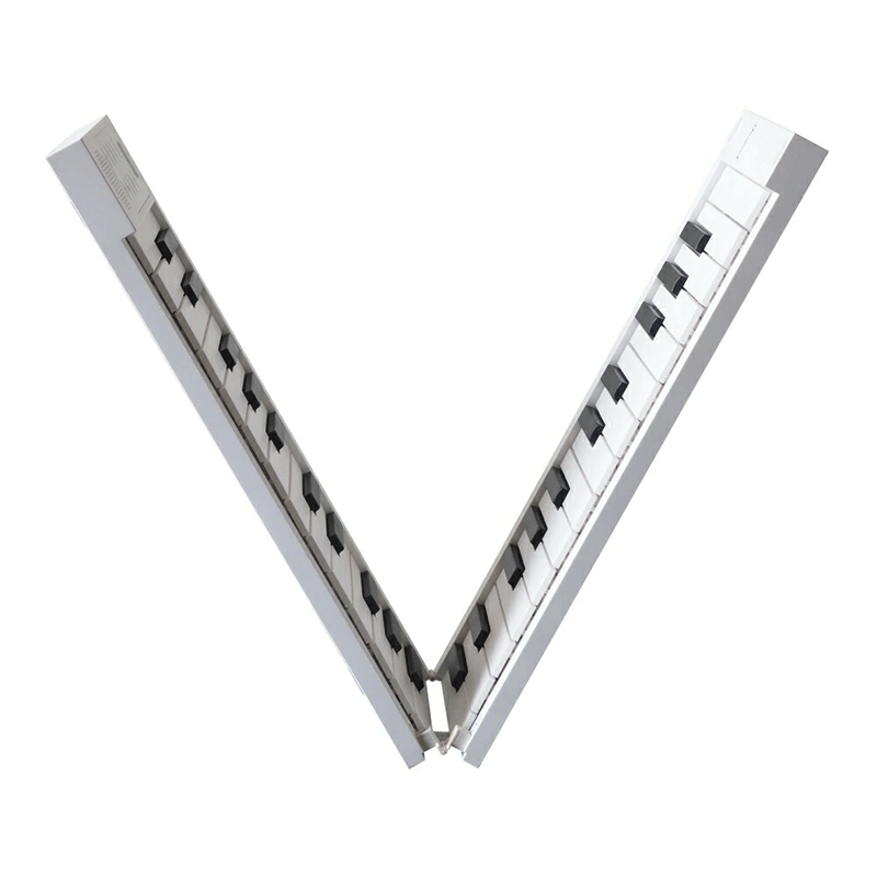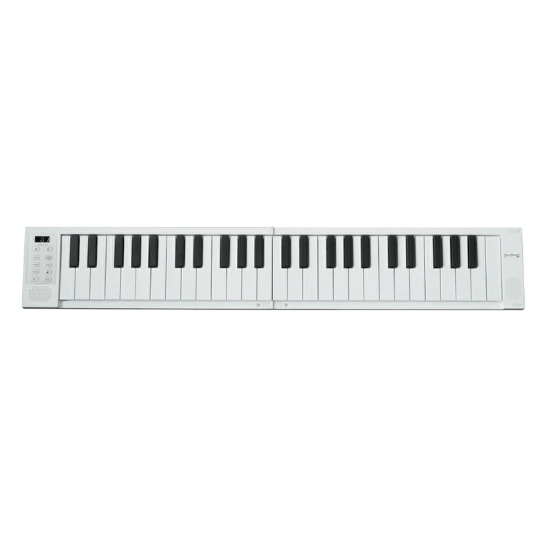 フルサイズの鍵盤、充電式、ステレオスピーカーなどの仕様はそのままに二つ折りでコンパクトに収納可能、重さはわずか1kg。