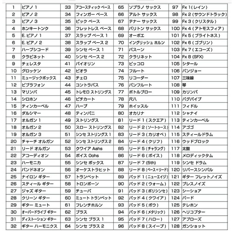 音源にはGM対応のピアノ、シンセサイザー、オルガン、バイオリン、サックス、オーケーストラをはじめ128音色を搭載。