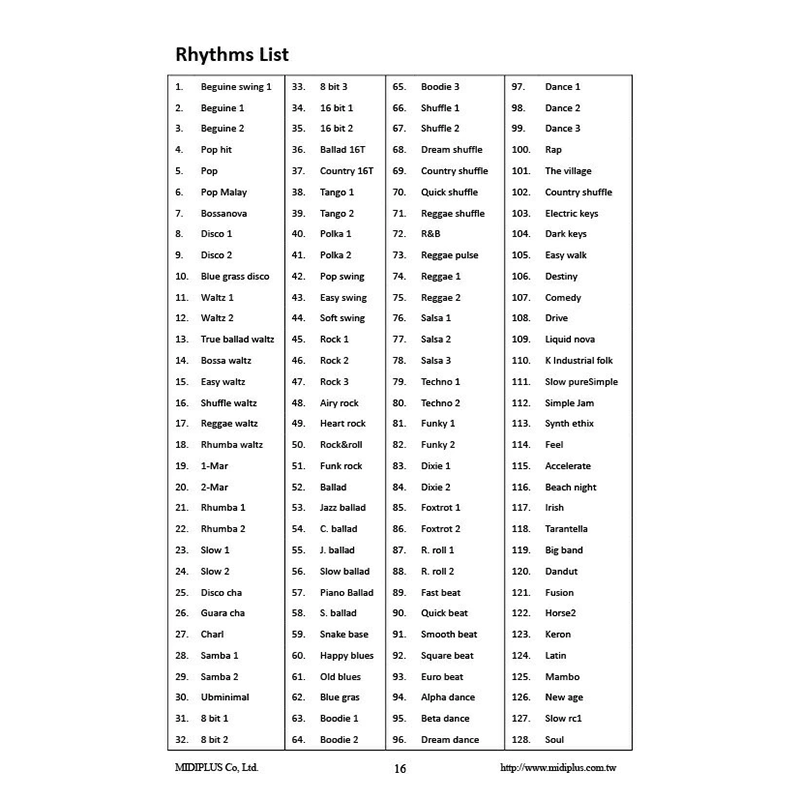 ・自動伴奏(リズム)機能(Pop、Rock、Salsa、Danceなど128種類)