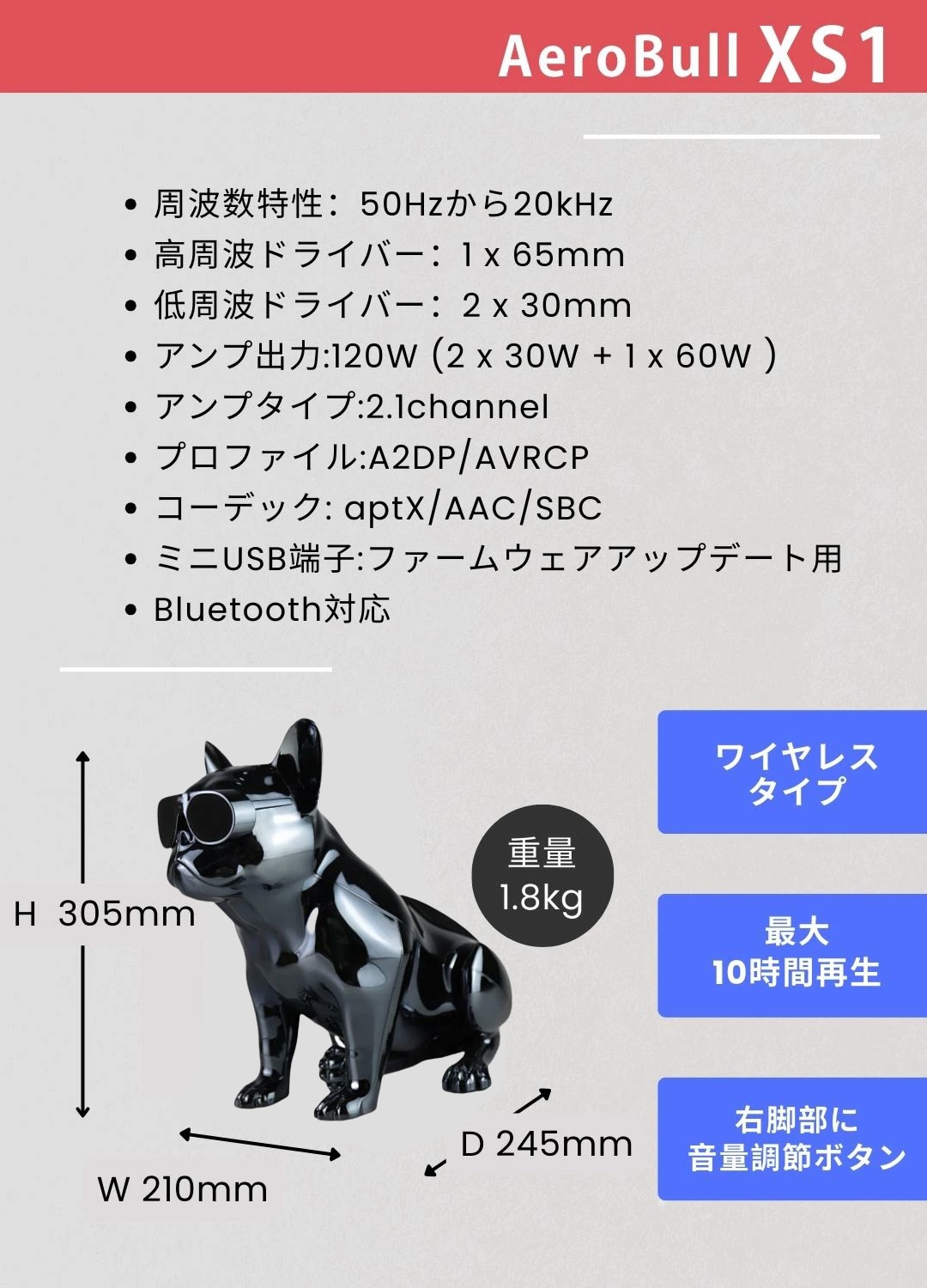 まるで巨大な犬の咆哮が体中から響き渡るような機能性とデザイン性を追求した最もユニークなスピーカーAeroBullシリーズ。