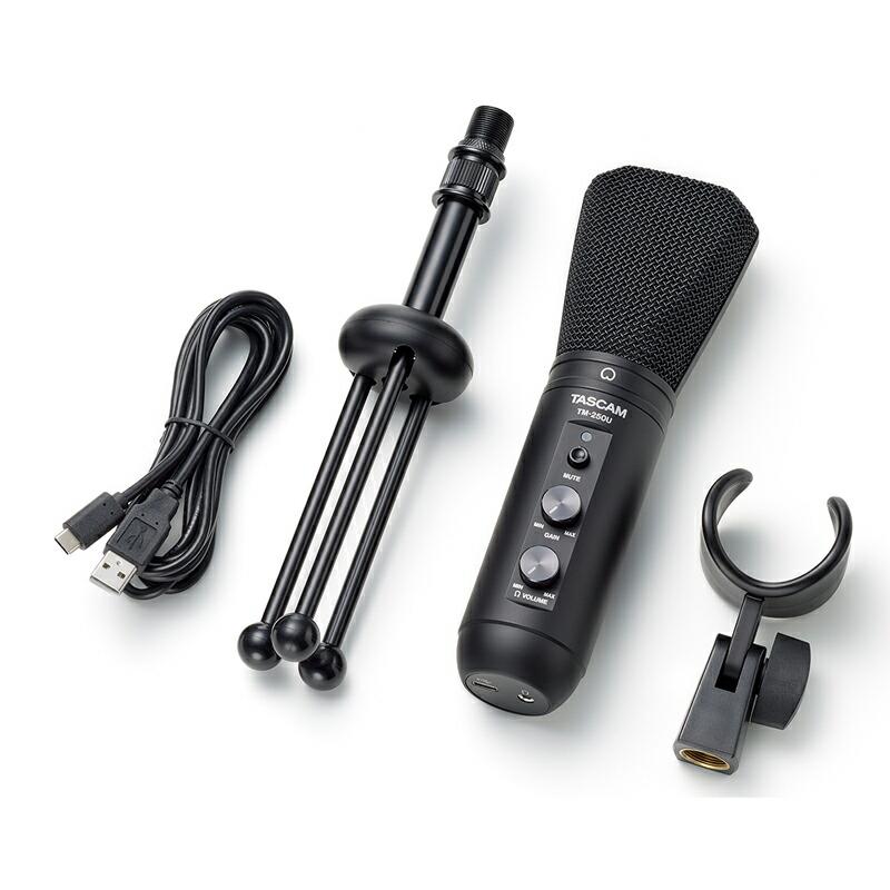 『TM-250U』には、USB Type-C - Type-A ケーブル(2m)、マイクホルダー(ネジ径 5/8インチ)、卓上マイクスタンドが付属されており、すぐにご使用いただけます。