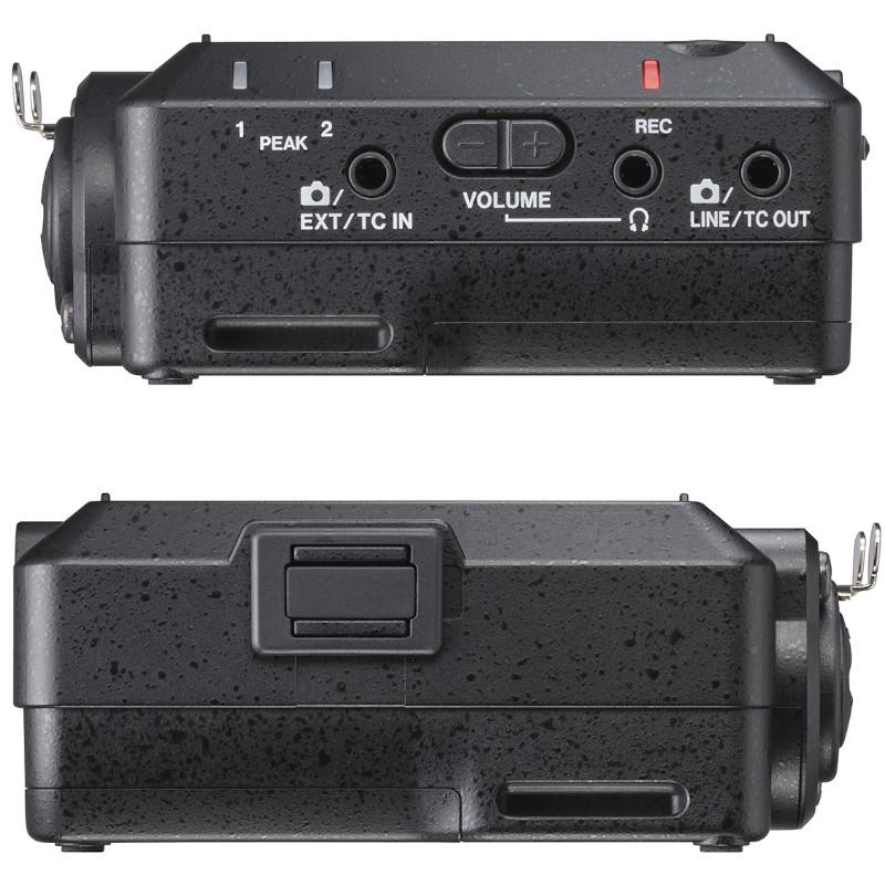 ・CAMERA/EXT/TC IN端子を装備。カメラ本体の収録音の出力、ワイヤレスマイク受信機からの出力やプラグインパワー(+2.5V/+5.0V)マイクにも対応