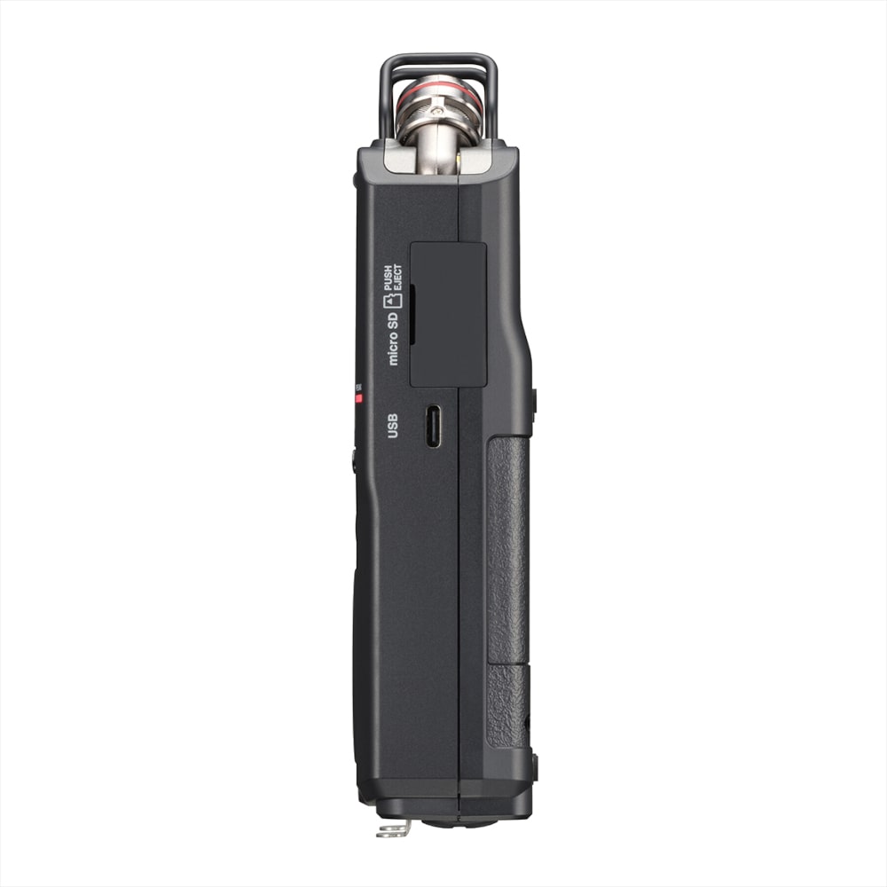 可動式ステレオマイク、超低ノイズのTASCAM HDDAマイクプリアンプ、ファンタム電源対応のXLR/TRS入力を搭載し、32ビットフロート/96kHz録音によりささやき声から爆音まで歪みのないクリアな音を確実に捉えます。
