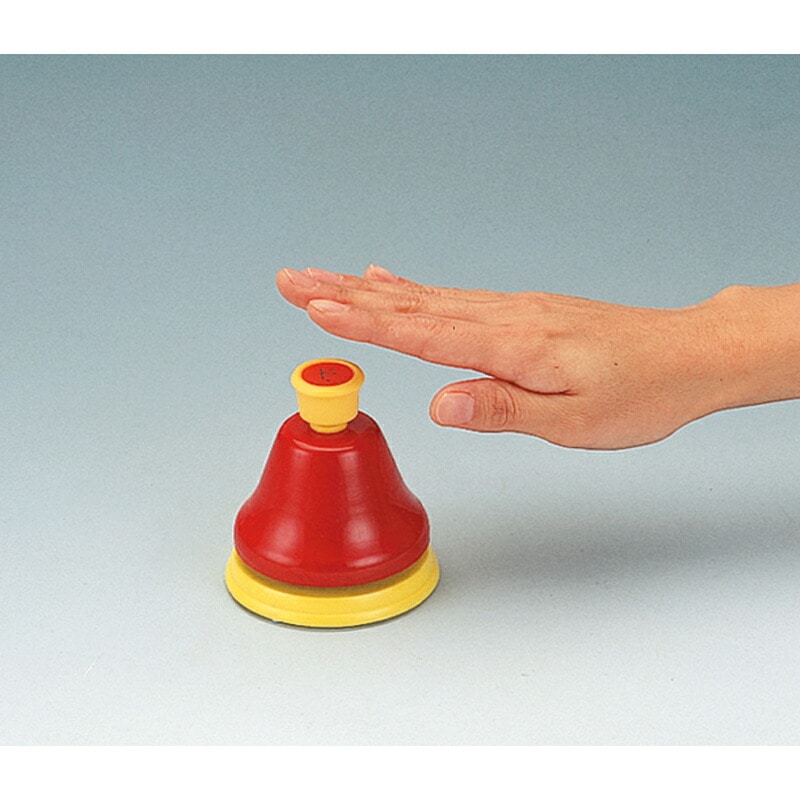 机などの上に置き、キャップを叩いて演奏するベルです。置き方を工夫することで様々な演奏が可能で、動きやあそびの要素を取り入れやすいでしょう。また、ベルを持ち替える必要が無いので、一人でより多くの音を演奏できます、複数の楽器を担当しても良いでしょう。