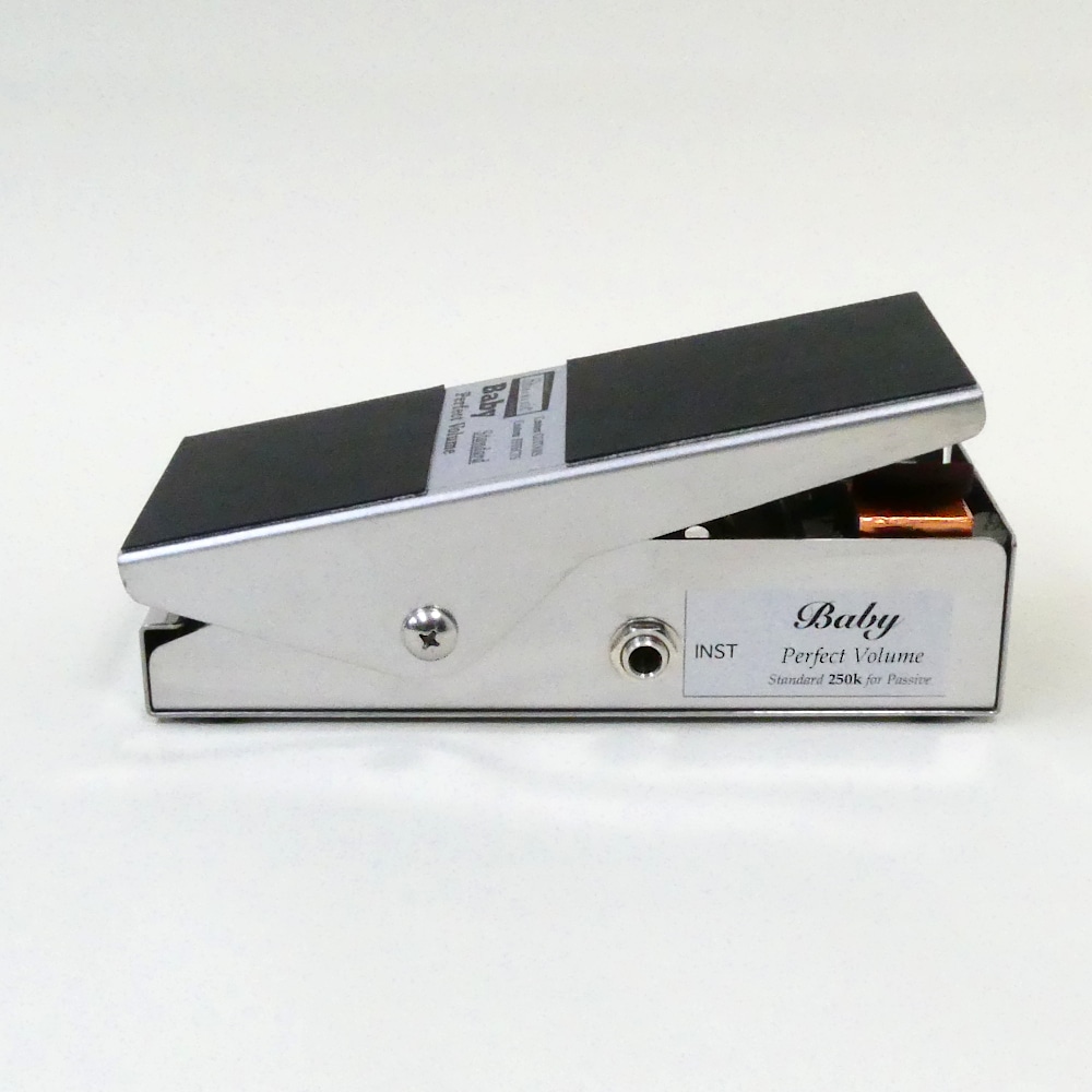ペダルボードへの組み込みやすいコンパクトサイズに加え、サイドに入出力とチューナージャックを装備し配線の行ないやすさも向上したBaby Perfect Volume。
