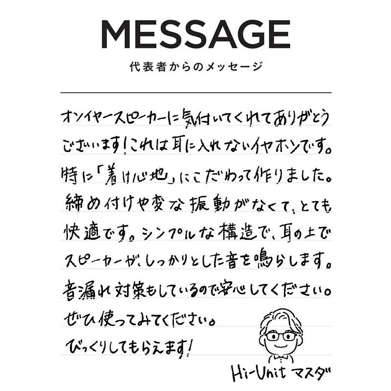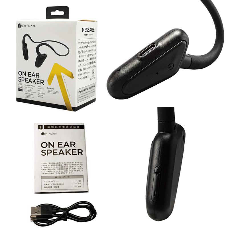 オンイヤースピーカーは、カナル型イヤホンのように耳に突っ込んで装着するでもなく、また骨伝導でもなく、耳の上にスピーカーを配置する構造をしています。