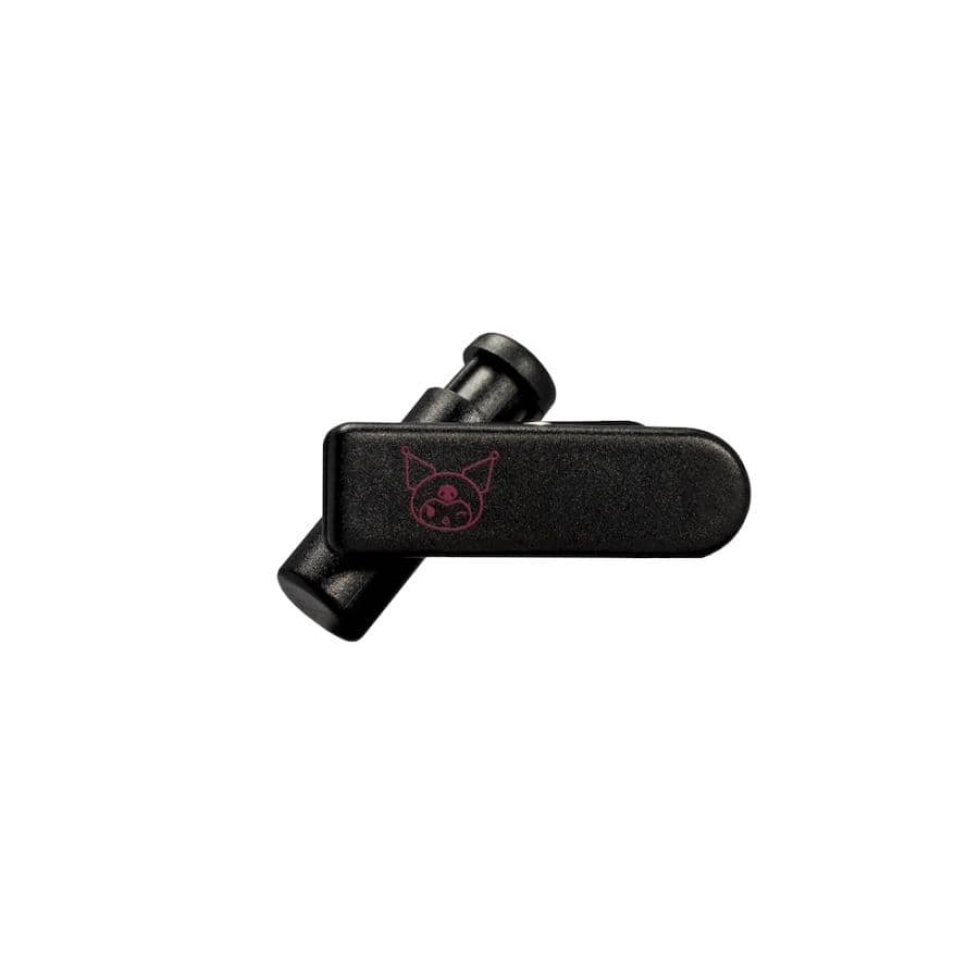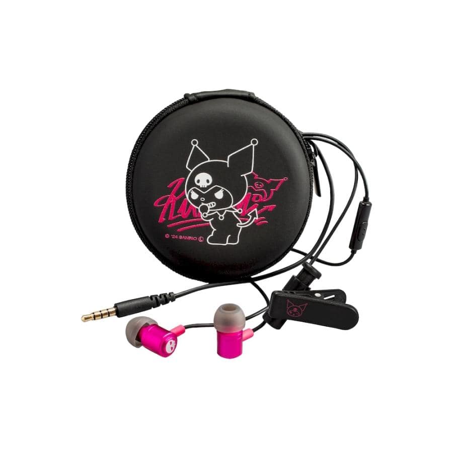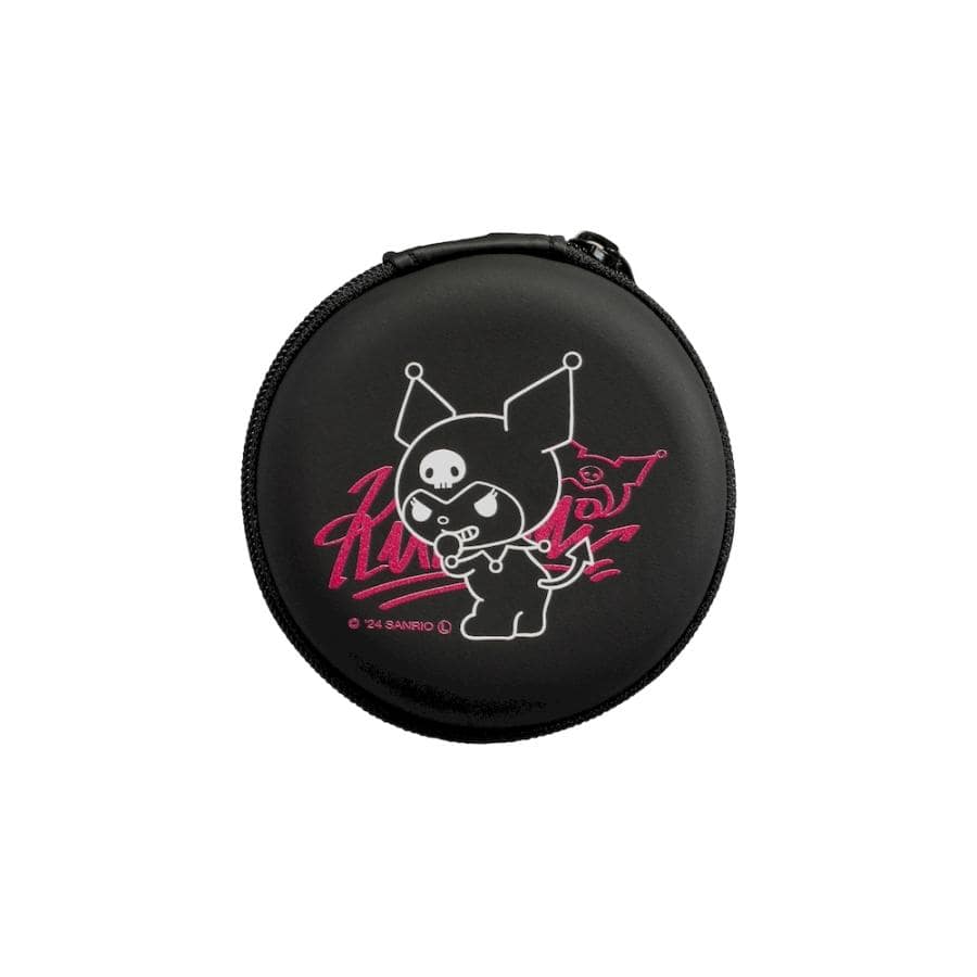 使っていない時にイヤホンをしっかり保管することで断線を防止できるキャリングケースには、中央にクロミ、その背景にラメ風のロゴがデザインされています。また、ケーブルを固定するクリップにも、ワンポイントでクロミがデザインされています。