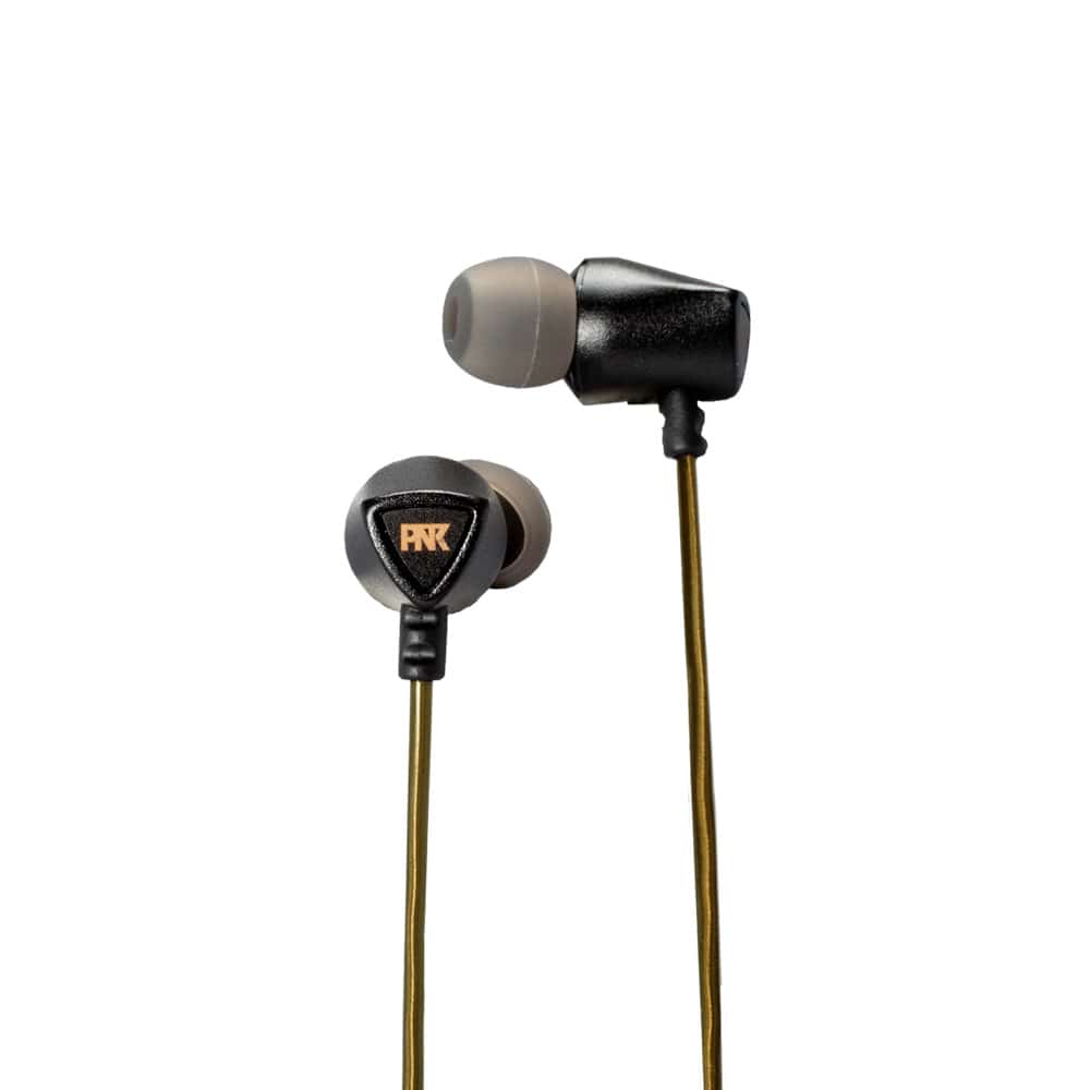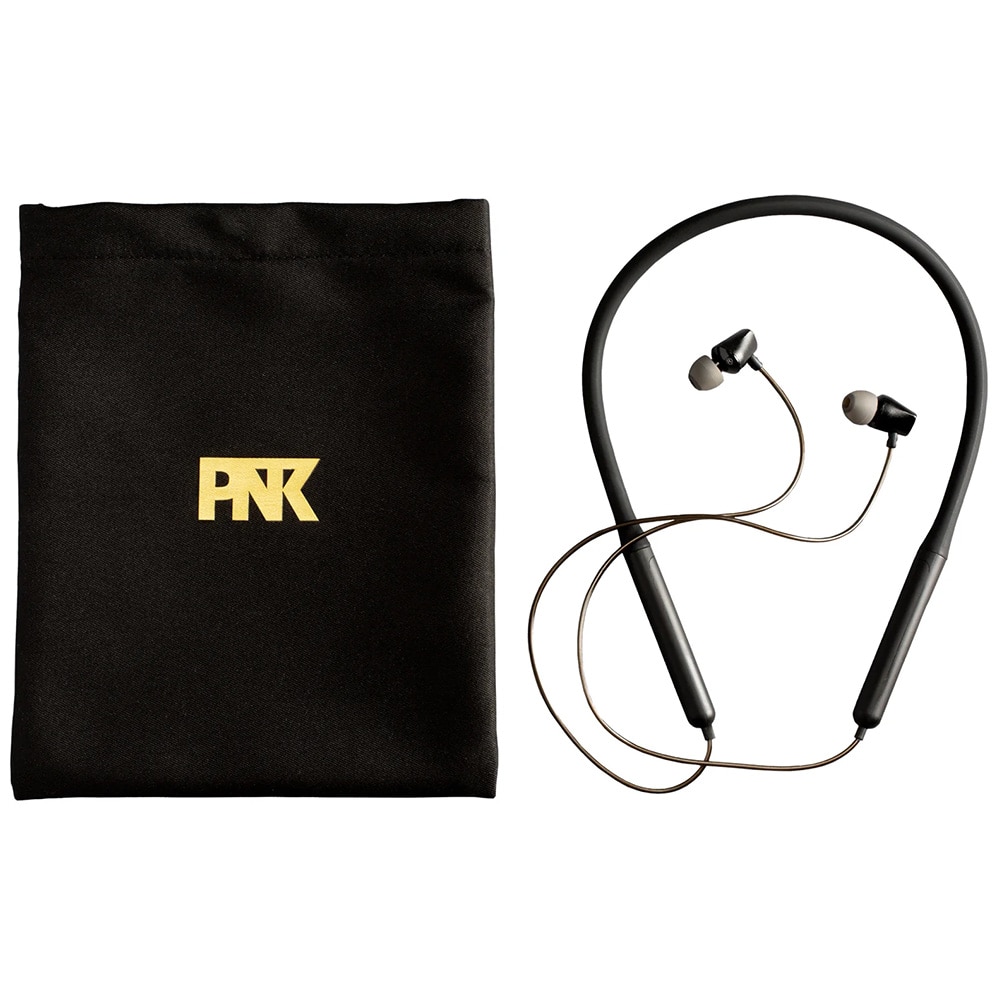 特長的な三角形のハウジングを採用。左右のフェイスプレートには、ピヤホンの象徴である【バイブスくん】と、ブランドマーク【PNK】をそれぞれデザインしました。