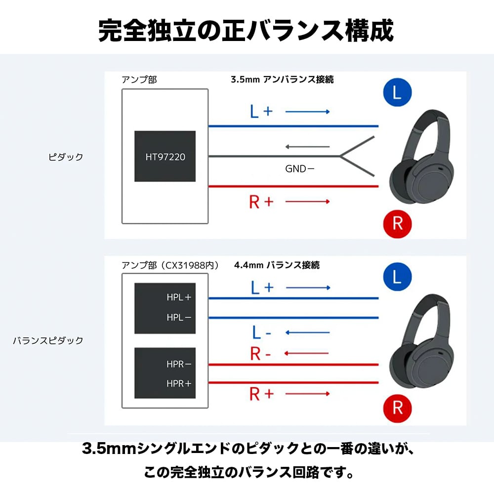 4.4mm バランス入力、正バランス構成。アンプを足さず、DAC チップ CX31988 のみで構