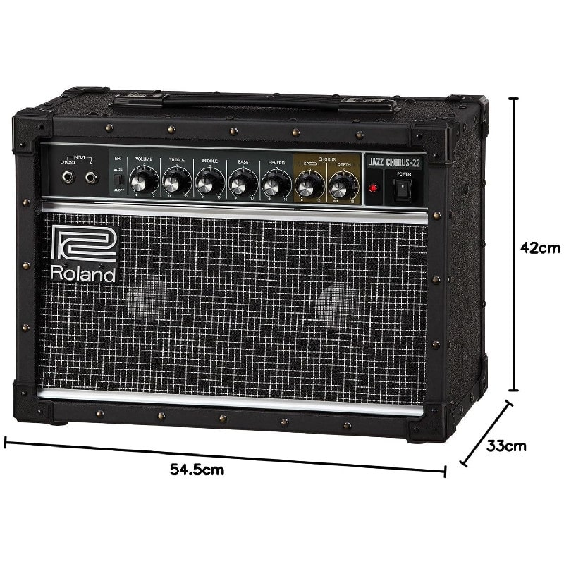 Roland の JCシリーズは、世界中でクリーン・アンプの代名詞となっています。伝統的なそのサウンドをコンパクトなマイルーム・サイズに凝縮したモデルが JC-22 です。アンプとスピーカーをそれぞれ2基搭載した JC独自の設計が生み出す、透明感のある「JCクリーン」は上位機種と変わらず健在。さらに、ギターからのダイレクト音と周期的にピッチを揺らした信号を、それぞれ独立したアンプとスピーカーから出力して得られる空間合成コーラス、ステレオならではの広がりが得られる上質なリバーブも搭載しています。楽器やプレイヤーの持つ個性を忠実に再現する歴史的なトーンをマイルームで得ることができます。