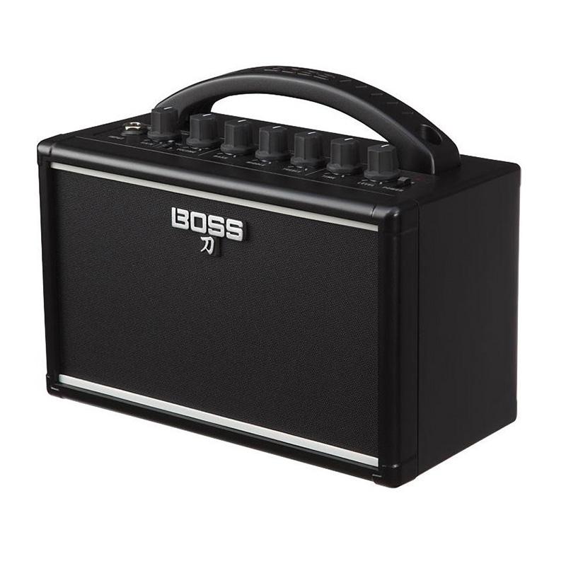 BOSSのKATANAアンプ・シリーズは、フラッグシップ・モデルWAZA AMPのエッセンスを取り込み、クラスを超えたサウンドや本格的なチューブ・レスポンス、充実したエフェクトでギタリストからの高い評価を集めるロック・アンプです。KATANA-MINIは、その上位クラスの本格的なサウンドをポータブル・サイズに凝縮したバッテリー駆動アンプです。本格的なステージ・クラスのアンプと同じように、段階的にゲイン・アップしていきダイナミックで表現力豊かな歪みを生み出すアナログ・ゲイン回路と、単純なEQではなくビンテージ・アンプの回路と同じ3バンド・トーンスタック、温かみのある残響音が特徴のディレイを搭載しており、クラスを超えた音作りと弾く楽しさが味わえるミニ・アンプです。気軽に持ち出せる小型・軽量ボディーとバッテリー駆動の実現により、さまざまなシチュエーションで本格的なロック・サウンドを楽しむことができます。