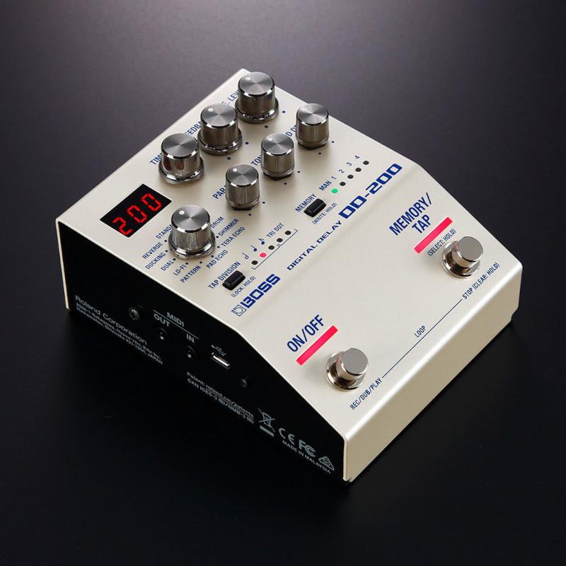 DD-200 Digital Delay は、フラッグシップ・モデル DD-500からサウンドと機能を継承。合計12種類のディレイ・モードを搭載しました。汎用性の高いクリアなディレイから、温かみのあるアナログ系、表現力豊かなアンビエント系まで、バリエーション豊かなサウンドを網羅しています。さらに、ルーパー機能や、ディレイ音が途切れることなくシームレスにメモリーの切り替えができるキャリーオーバー機能も搭載しています。