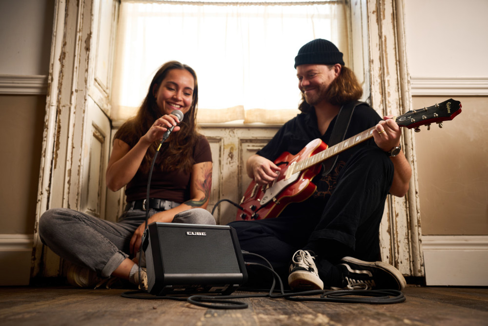 CUBE Street MINIは2つのチャンネルを搭載し、ソロやデュオでの演奏が可能です。ギター、キーボード、または電子管楽器のエアロフォンをボーカル・マイクと組み合わせたり、両チャンネルにマイクを接続してデュオ・ボーカルにしたりなど、多彩なパフォーマンスに対応。さらにBluetoothオーディオを搭載しているため、モバイル端末からワイヤレスでバッキング・トラックも再生できます。直感的な操作で、それぞれのソースの音量を独立して調節することが可能です。